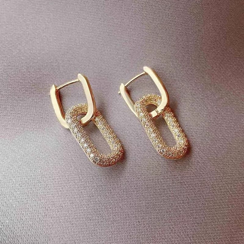 洗練された印象を持つスクエアチェーンゴールドピアス。