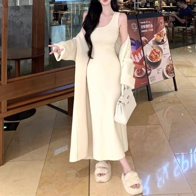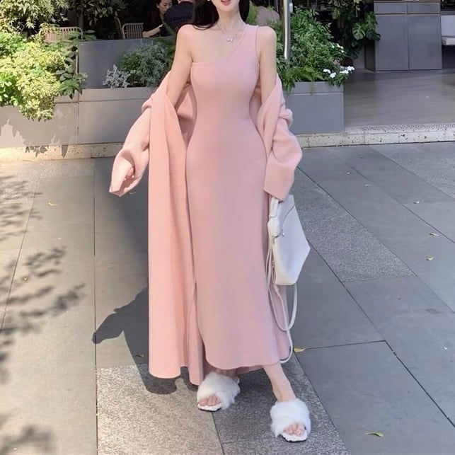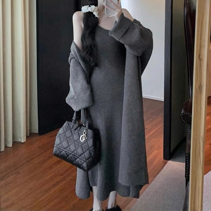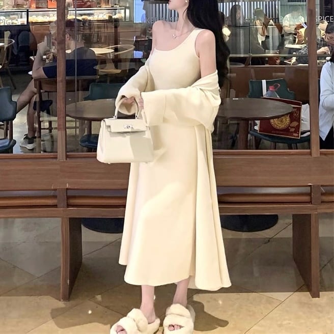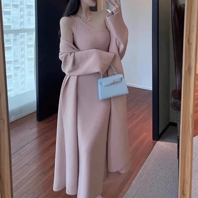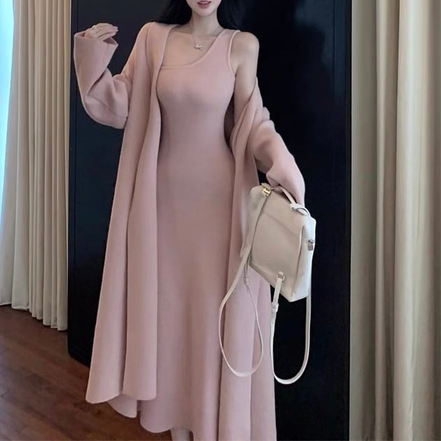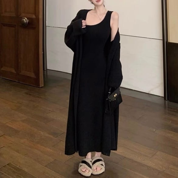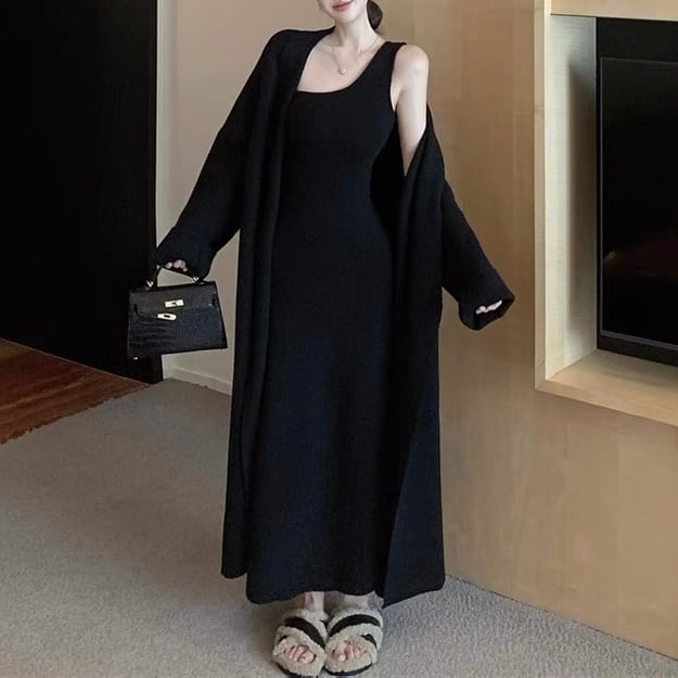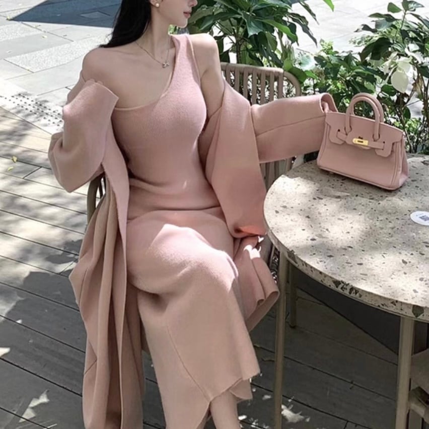 ロングカーディガン&ニットワンピースセット〈2025 SS〉