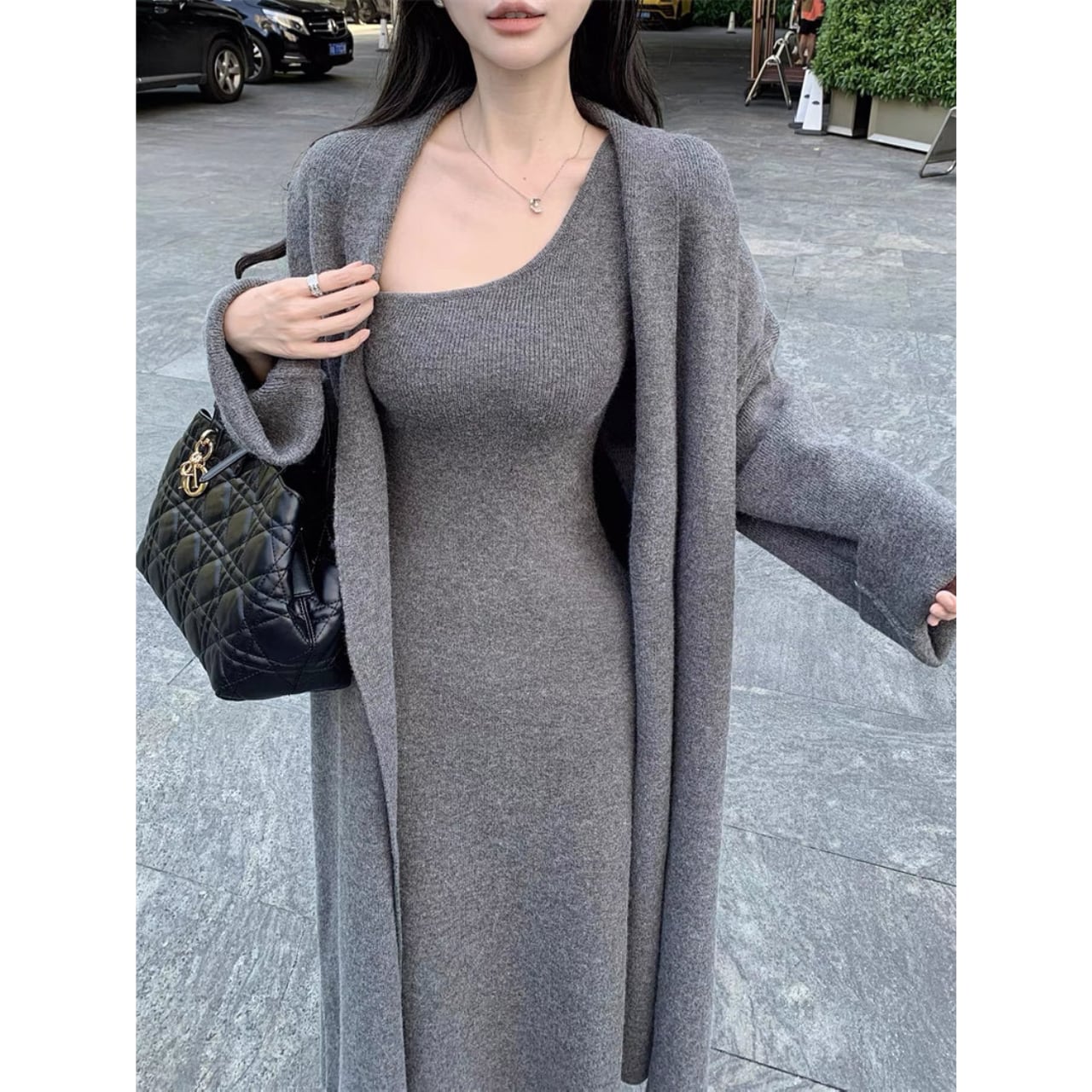洗練された魅力を醸し出すロングカーディガン&ニットワンピース。