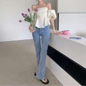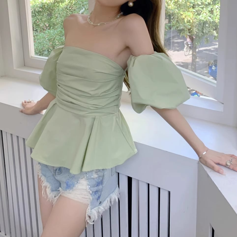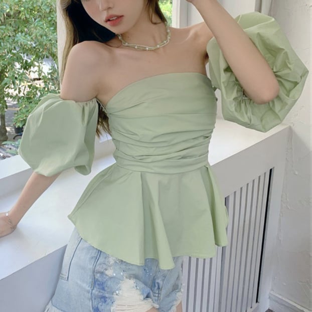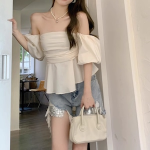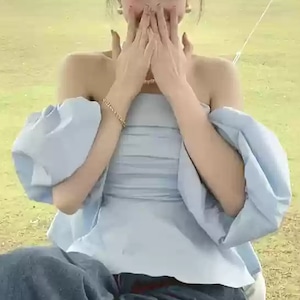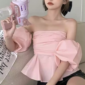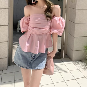 色気と可愛さが絶妙に融合した、デート映え必至のパフトップスです♡ビスチェデザインで、簡単に魅力的なデートファッションが楽しめます。特徴的なパフスリーブとオフショルデザインが、女性の柔らかさを引き立て、韓国風のトレンドをさりげなく盛り込みます!カジュアルな日常使いから特別なシーンまで、さまざまなコーディネートに活躍すること間違いなしの一品です。このトップスで、あなたの魅力をさらに引き立ててしまいましょう!