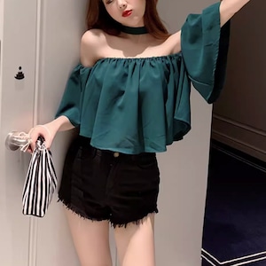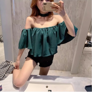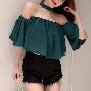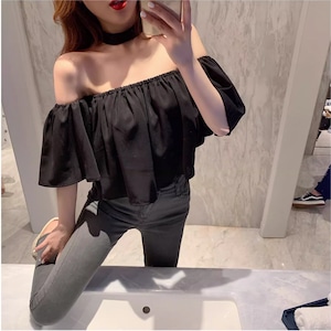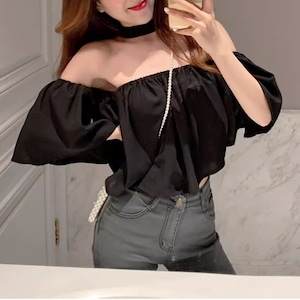 上品でありながらセクシーさも兼ね備えたオフショルダー チョッカーネックトップです!大人の女性にぴったりのワンショルダーデザインが、あなたの魅力を引き立てます。チョッカーネックが首元を美しく見せ、エレガントな印象を与えるため、特別なシーンでも自信を持って着用いただけます。軽やかな素材感が動きを表現し、さまざまなスタイリングに合わせて楽しむことができます。自分だけのスタイルで特別な瞬間をお楽しみください!