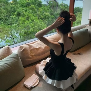 Uネックでデコルテをきれいに見せつつ、バレエスタイルの優雅なニュアンスをプラス。