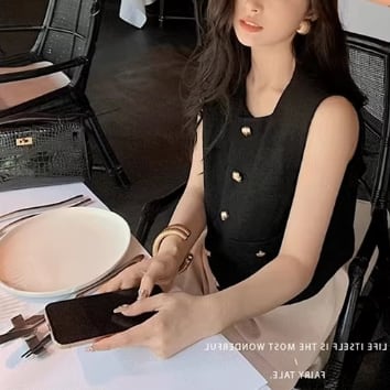 華やかツイードノースリーブベストが新登場です!高級感のあるツイード素材に、ゴールドボタンがアクセント!シンプルなコーディネートでも華やかな印象を与えます♡ノースリーブデザインは、夏の暑い日にも快適に着用でき、カジュアルからオケージョンまで様々なシーンで重宝する一枚です♡
