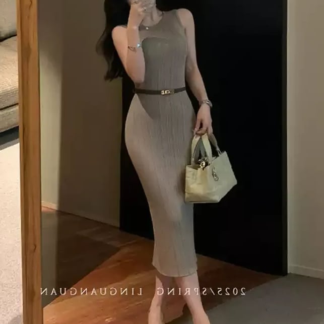 大人セクシー♡ベルト付きニットタイトワンピ〈2025 SS〉