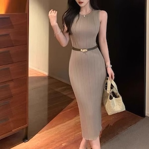 上品セクシー♡ベルト付きニットタイトワンピが新たに登場です!洗練されたデザインのノースリーブタイトワンピは、タイトなシルエットが美しいラインを引き立て、上品さとセクシーさを兼ね備えています。ベルト付きのため、ウエストをキュッと引き締め、スタイルアップをサポート!デートや特別なお出かけのシーンにぴったりなアイテムです♡