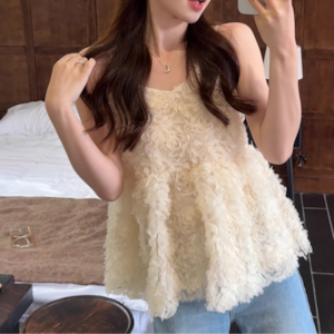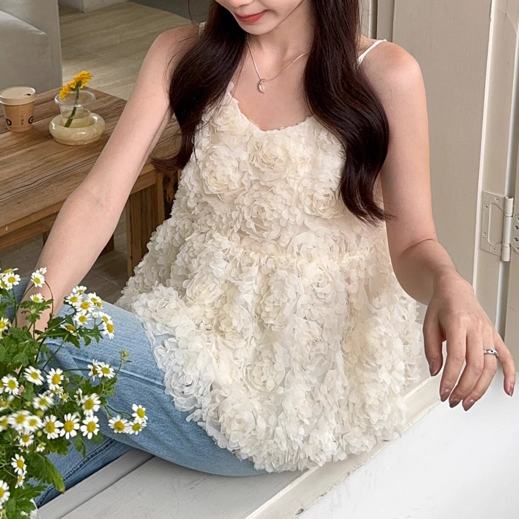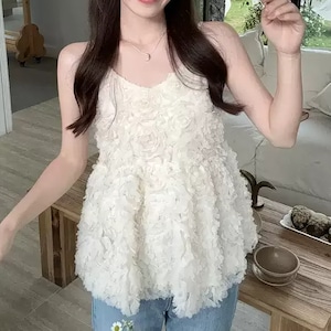 花咲く♡ローズフレアノースリーブ〈2025 SS〉が新登場です!立体的なローズフレアデザインが特徴で、まるで妖精の花のようなロマンチックな雰囲気を楽しめる一着です!ノースリーブなので、これからの季節のコーディネートにサッと合わせられ、カーデや重ね着にも使えます♡