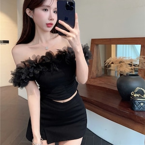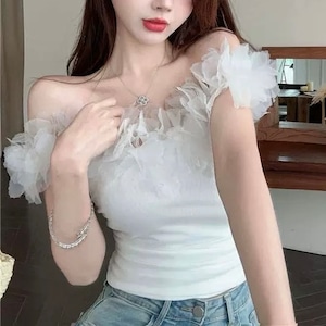 フェミニンさと遊び心を兼ね備えたデザインが特徴で、春夏のコーディネートにぴったりの一着です!オフショルダーのフリルが華やかさをプラスし、女性らしい印象を与えます。デイリーから特別なシーンまで、どんなスタイルにもマッチするセンス抜群なアイテムです。