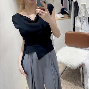 美人度UP◎スリットニットタンクトップ〈2025 SS〉が新登場です!このおしゃれなスリット袖なしトップスは、軽やかなサマーニット素材で作られており、真夏のデートやカジュアルなお出かけにぴったりの一着です。ノースリーブデザインが涼しさを与えつつ、トレンド感を演出します。