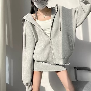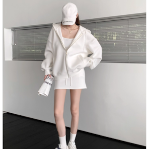 フードパーカー×スカート2点セットの大人カジュアルコーデが新登場!ジップアップパーカーとスカートが組み合わさったおしゃれなデザインが特徴です。シンプルでありながらこなれ感を演出するスタイリングは、普段使いからカジュアルなお出かけまで幅広く活躍します。ドロスト仕様のフードでゆったりとしたルーズ感を楽しみながら、重ね着スタイルも楽しめるアイテムです!