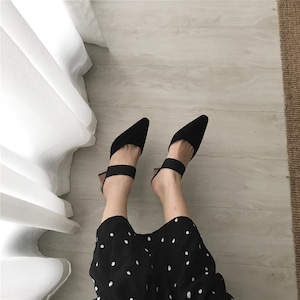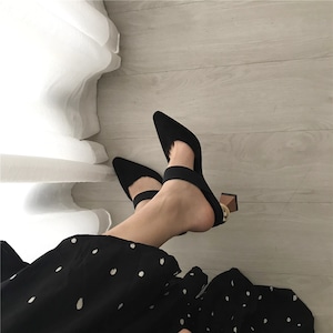 個性的でおしゃれなスタイルを演出!ユニークなデザインのスエードチャンキーヒールパンプス♡安定感抜群のチャンキーヒールとボール形状のディテールが魅力的です!歩きやすい設計ながら、個性的なファッションを楽しむことができる一足です。