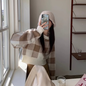 チェック柄♡着痩せショート丈ニット◎〈2025 AW〉
