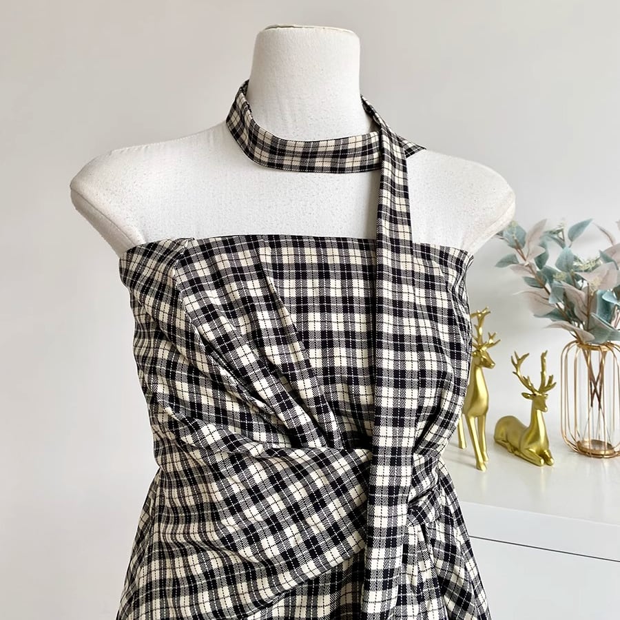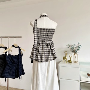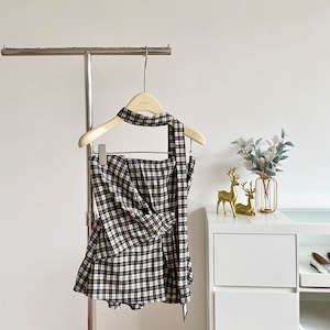 立体感のあるチェックヘムが特徴で、甘さにちょっぴりスパイスを効かせた韓国ガーリーなスタイルを演出⭐︎チャック柄を取り入れるだけで一気に秋仕様♡軽やかな着心地で、カーデに羽織れば秋口も大活躍!