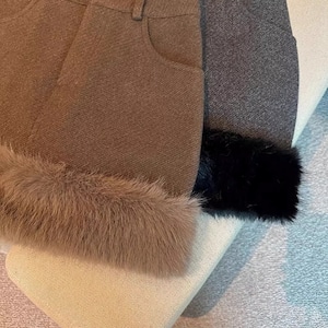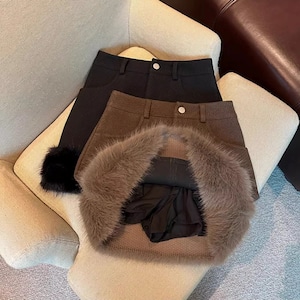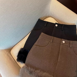 もこもことした質感が魅力のフェミニンスカート〈2025 AW〉!秋冬に大活躍間違いなしのデートコーデにぴったりな女性らしさを演出します。ウールライクな素材感に加え、もこもこボア裾が温かみを感じさせ、韓国ファッションのトレンドを押さえた一着です!シンプルなトップスと合わせることで、より女性らしさを引き立ててくれます。