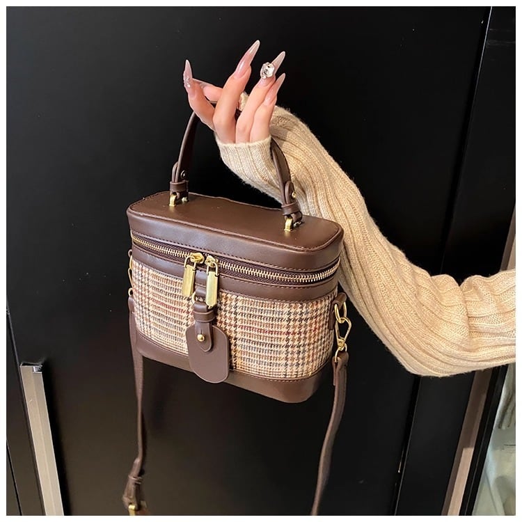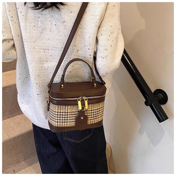 ブラウン、ミニ千鳥格子柄、大千鳥格子柄