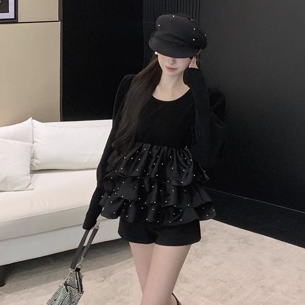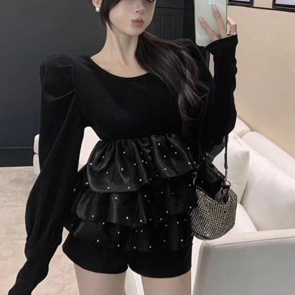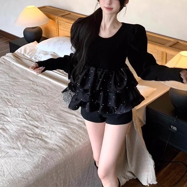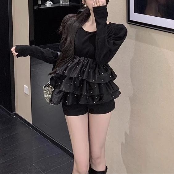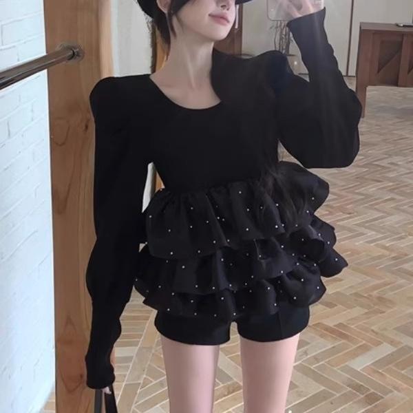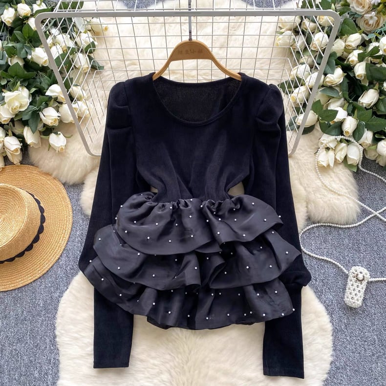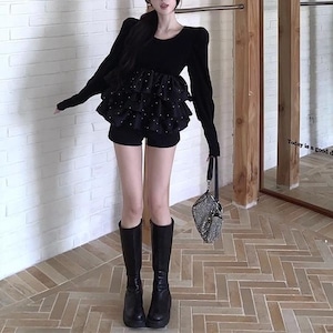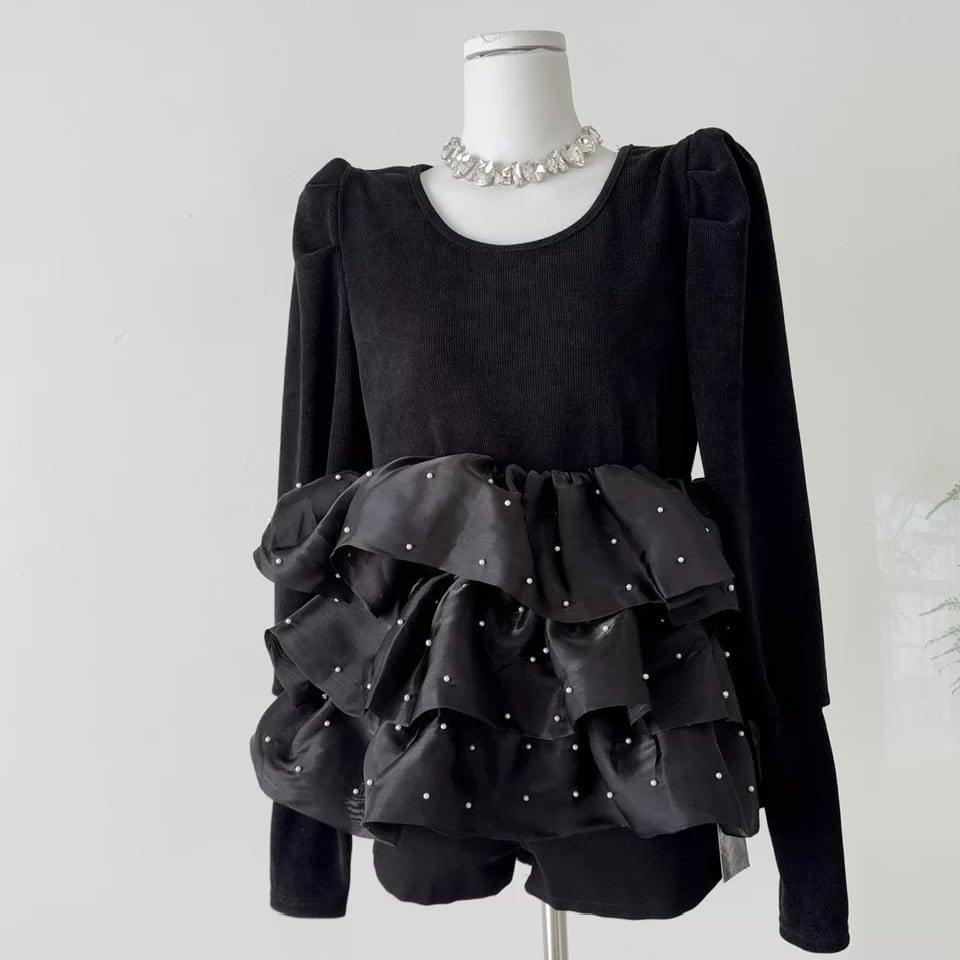 秋冬エレガント♡フリル付◎パールペプラムトップス〈2025 AW〉