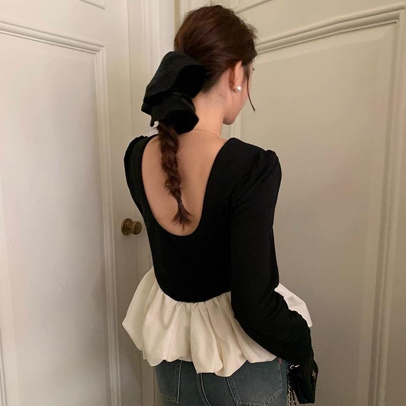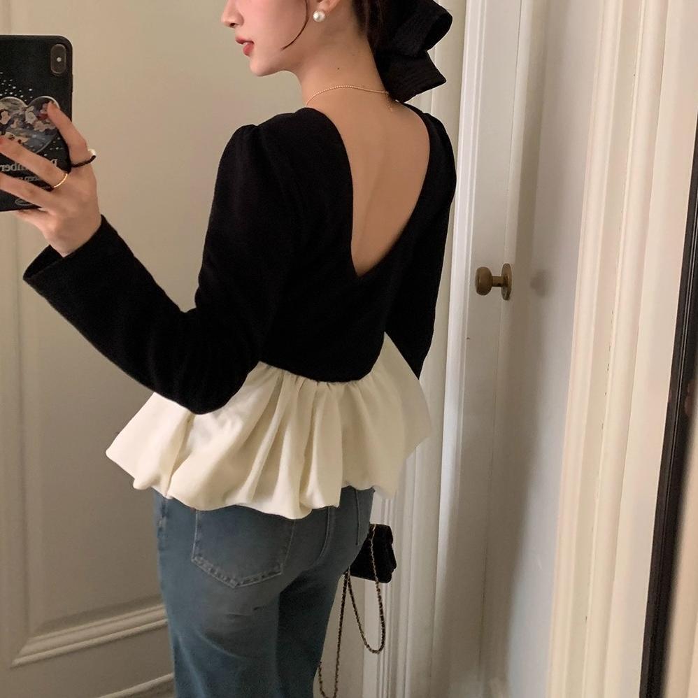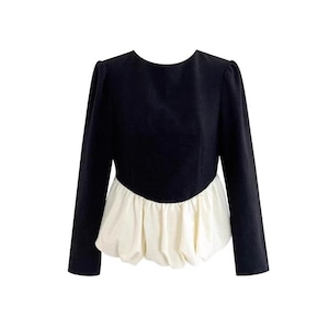 大人の女性におすすめ☆洗練された魅力を引き出す!バックオープンのペプラムフレアプルオーバー、特別な一枚の登場!このアイテムは、背中が開くデザインとフリルが特徴で、きれいめな印象が夏や秋の大人カジュアルにぴったり。シルエットが美しく際立ち、さまざまなコーディネートに華やかさを添えてくれます。デイリーユースから特別なシーンまで幅広く活躍する、あなたのワードローブに欠かせないアイテムです!