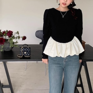 上品きれいめ♡バックオープン◎フレアペプラムトップ〈2025 AW〉