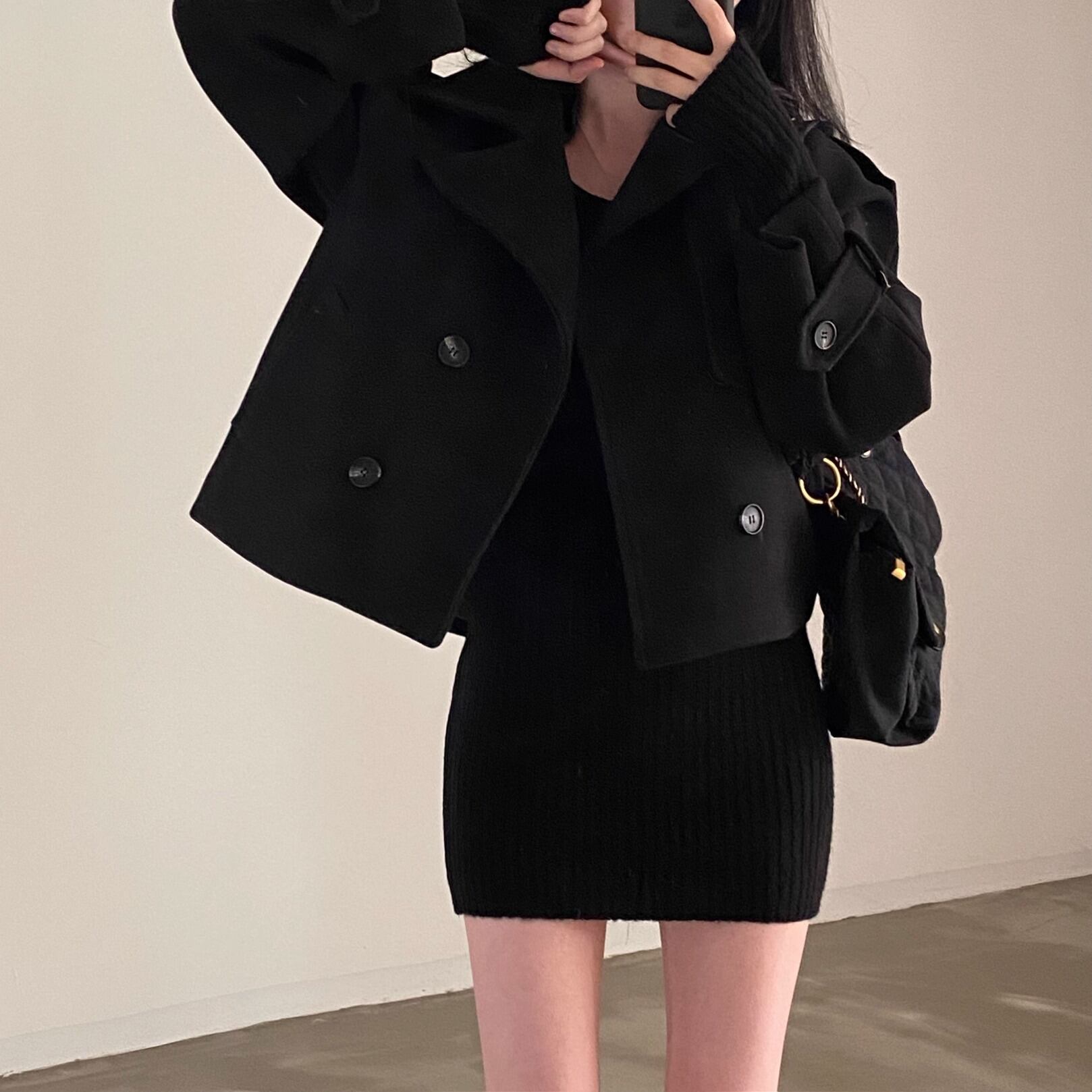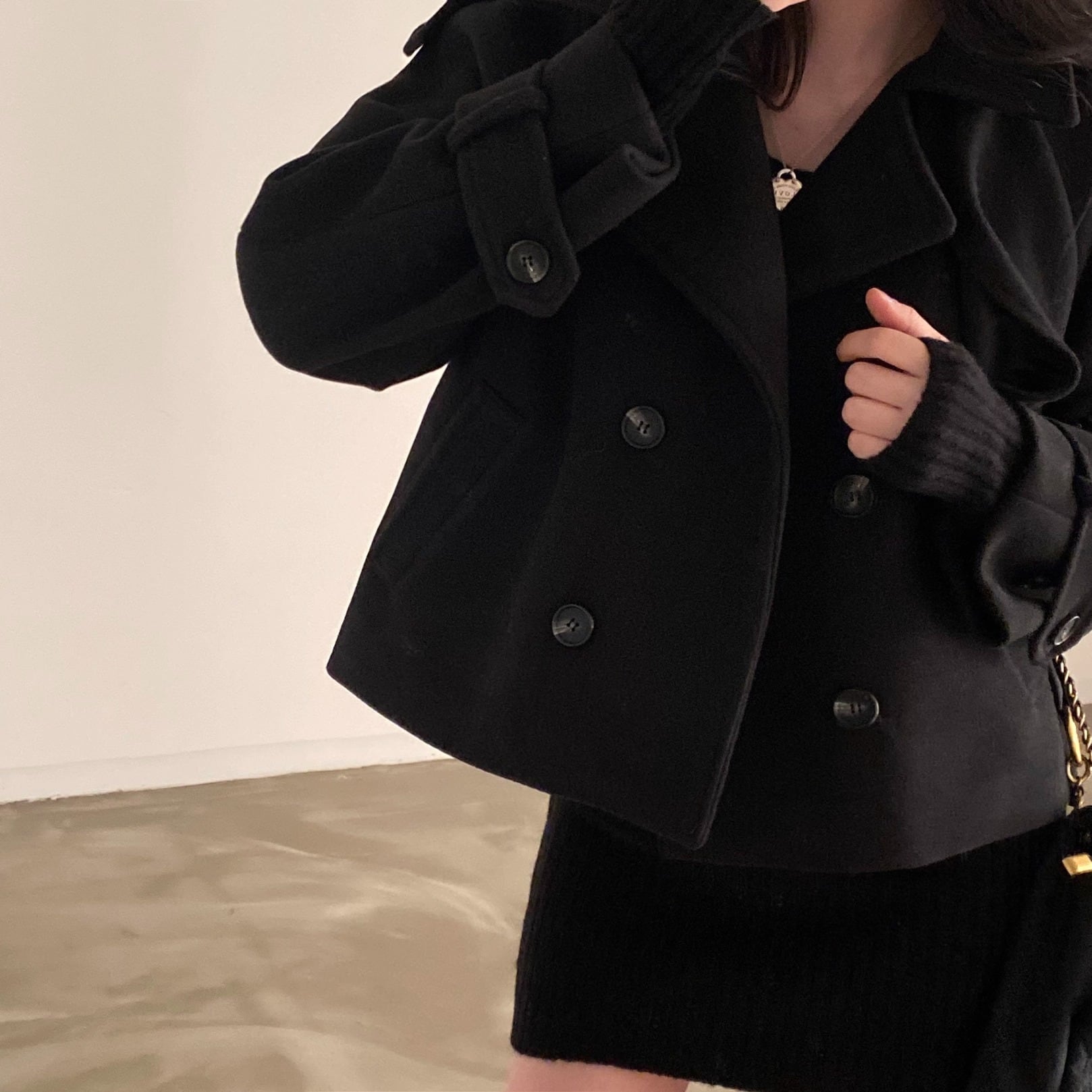 綺麗め可愛い◎ダブルルーズショートコート」のご案内です♡このアイテムは、シンプルでありながらもおしゃれな韓国風のダブルハーフコート。ルーズなシルエットで、綺麗めにもカジュアにもさまざまなスタイルに合わせやすく、この冬大活躍まちがいなし⭐︎