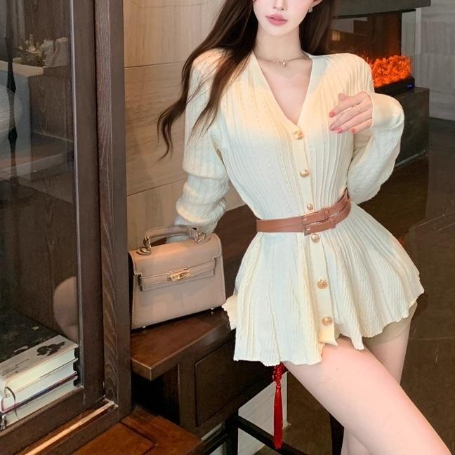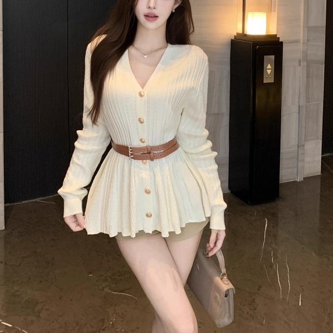 ベルト付きVネックペプラムトップス 韓国カジュアル♡〈2025 AW〉