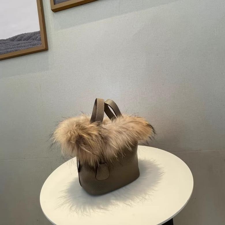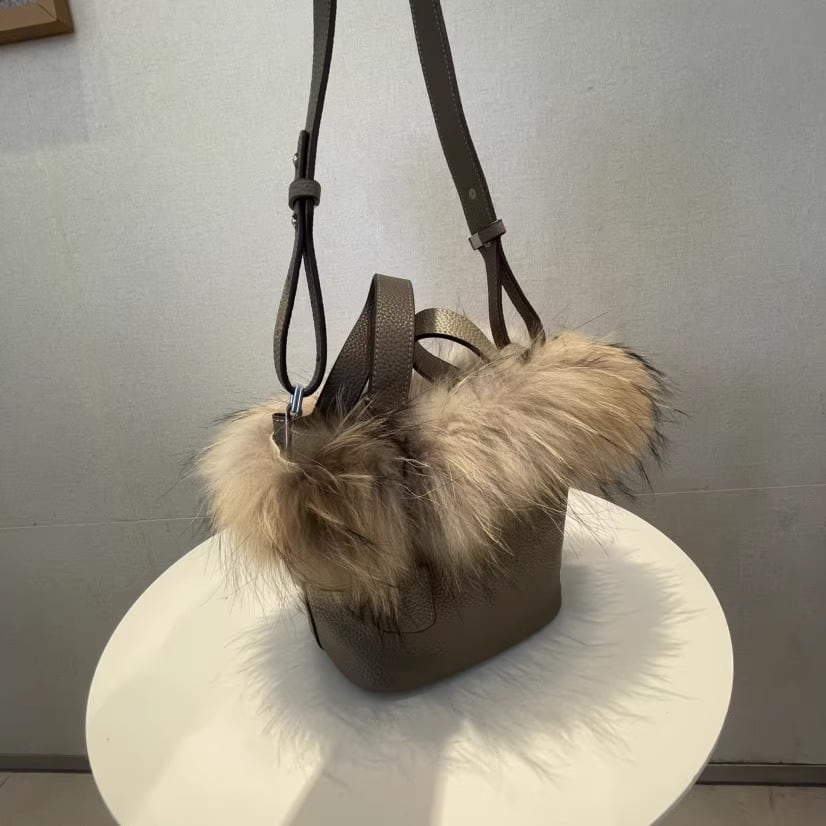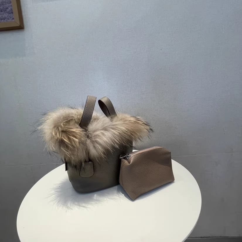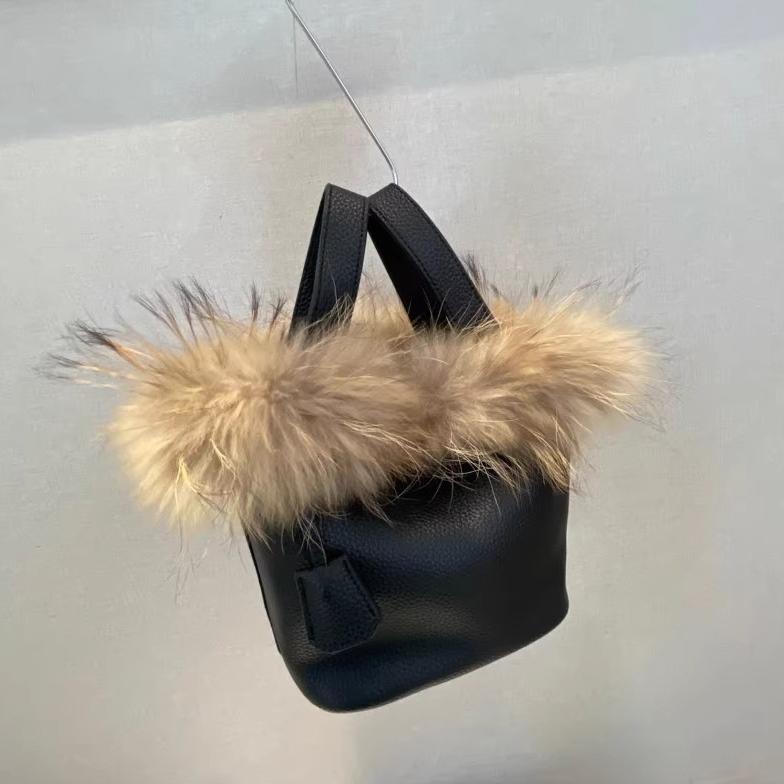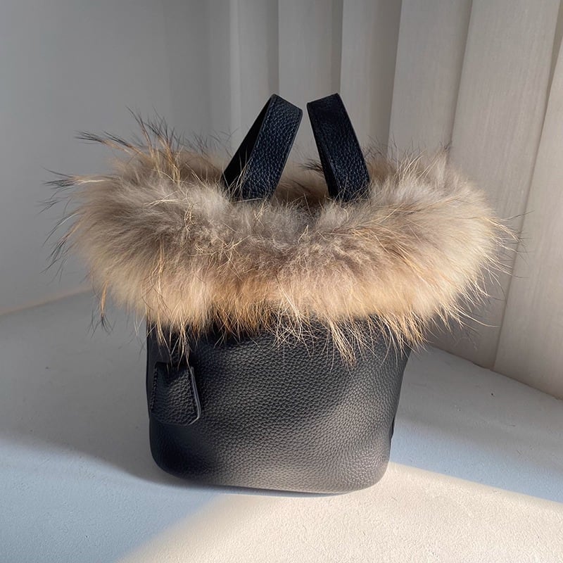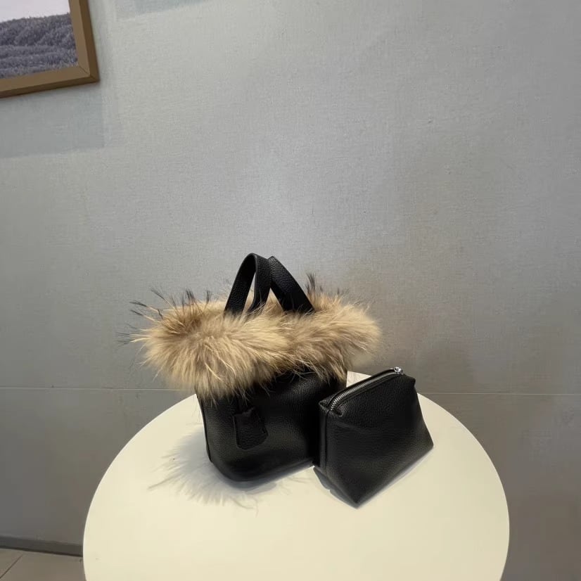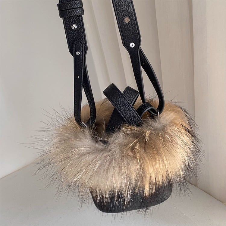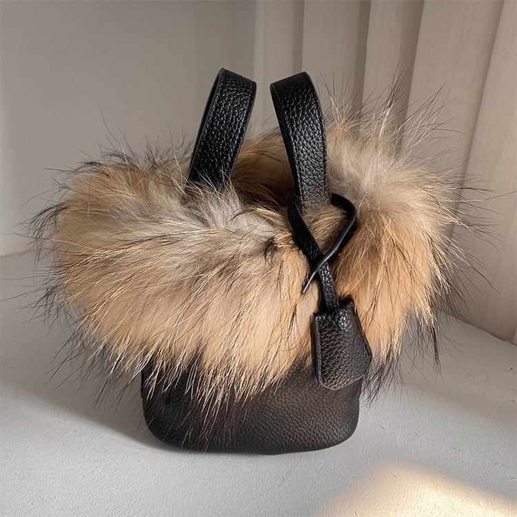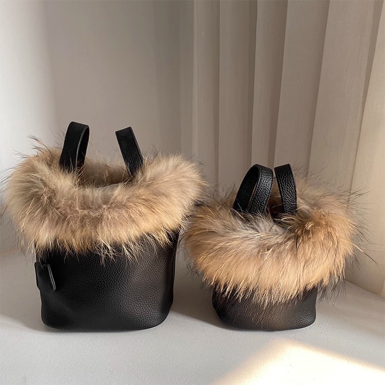 ファッショナブルで実用的な「2WAY◎ファー×レザーバッグ♡♡リアルファーと高品質なレザーを使用したハンドバッグとトートバッグの2WAY仕様。キューブ型とバケツ型のデザインが特徴で、軽量なのに大容量でたっぷり収納可能なため、日常使いに便利な一品です♪ バッグインバッグとショルダーベルトが付属しており、シーンに応じて持ち方を変えることができます!