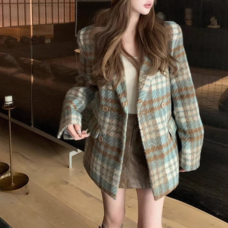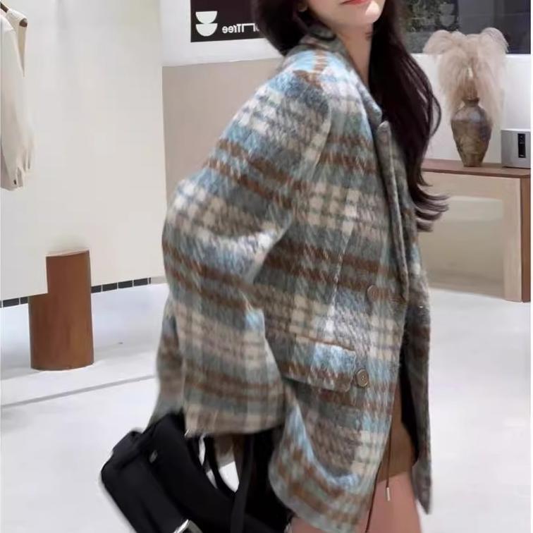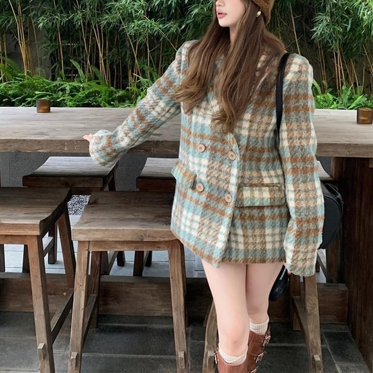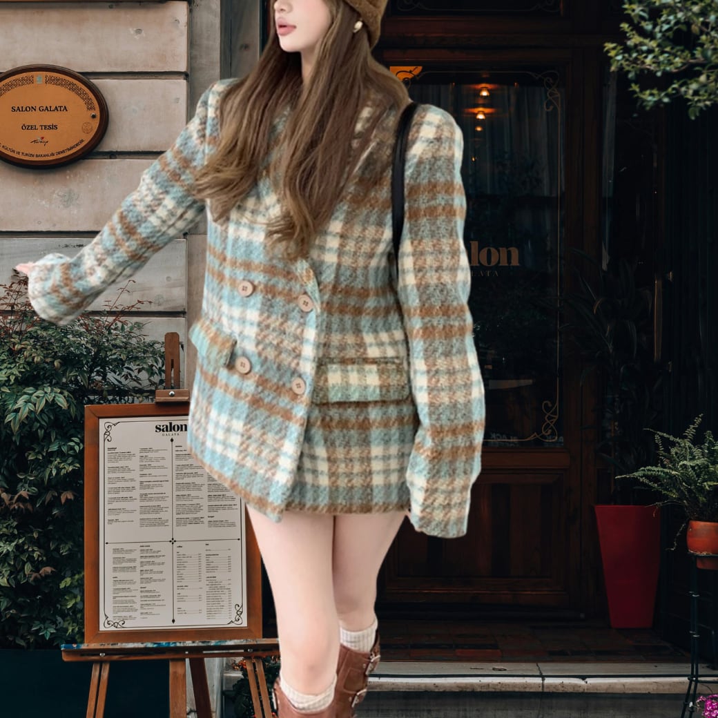 「大人可愛い☆ダブルボタンメルトンチェスターコート」が新登場♡ブルーのチェック柄が印象的なチェスターコート。テーラードデザインとダブルボタンが施されており、おでかけからデートまで幅広く活躍する一品です♪