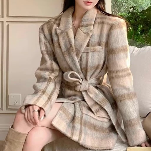 トレンド感満載のプレイド柄◎ウエストマークコート♡このアイテムは、トレンド感もありつつ柔らかなプレイドチェック柄がふんわり上品な雰囲気を叶えます。ウエストのリボンベルトがフェミニンな印象を与え、さまざまなスタイルに合わせることができます♪