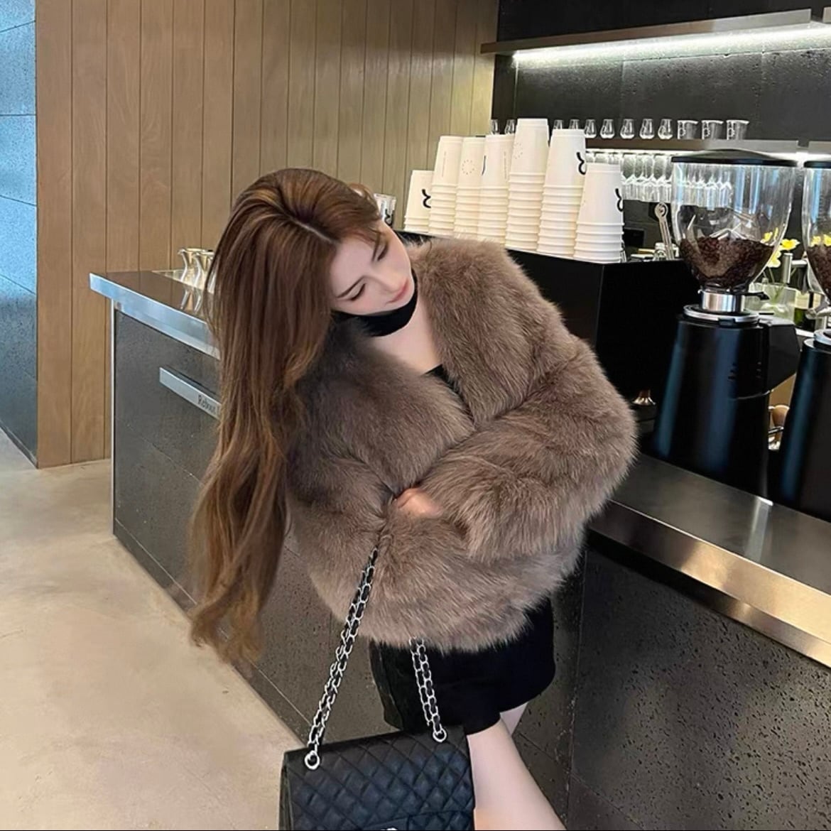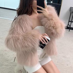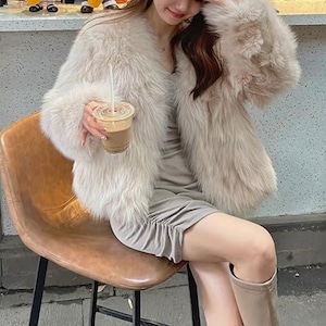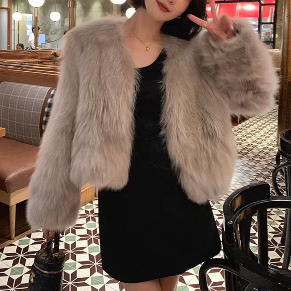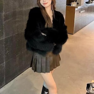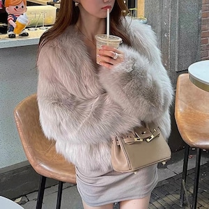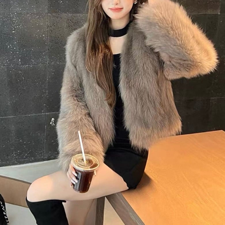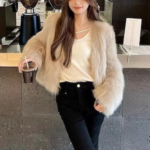 大人の女性にぴったり☆エレガントで温かみのある「エレガントフェイクファー ノーカラーショートコート」のご案内です♡このアイテムは、ふわふわのフェイクファーを使用したショート丈のコートで、寒い冬の日に最適!ノーカラーのデザインが洗練された印象を与え、エレガントなスタイルを演出します。結婚式やパーティーなどの特別なシーンでも活躍しつつ、もこもこの素材感が軽やかで心地よい着心地を実現しています♪