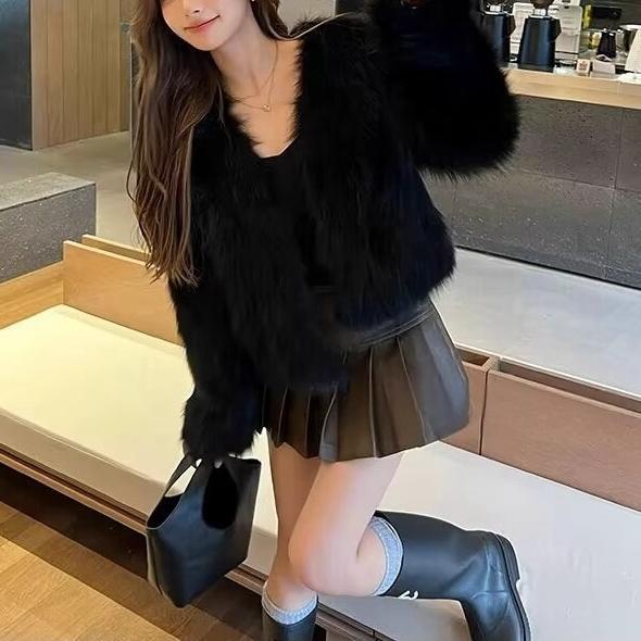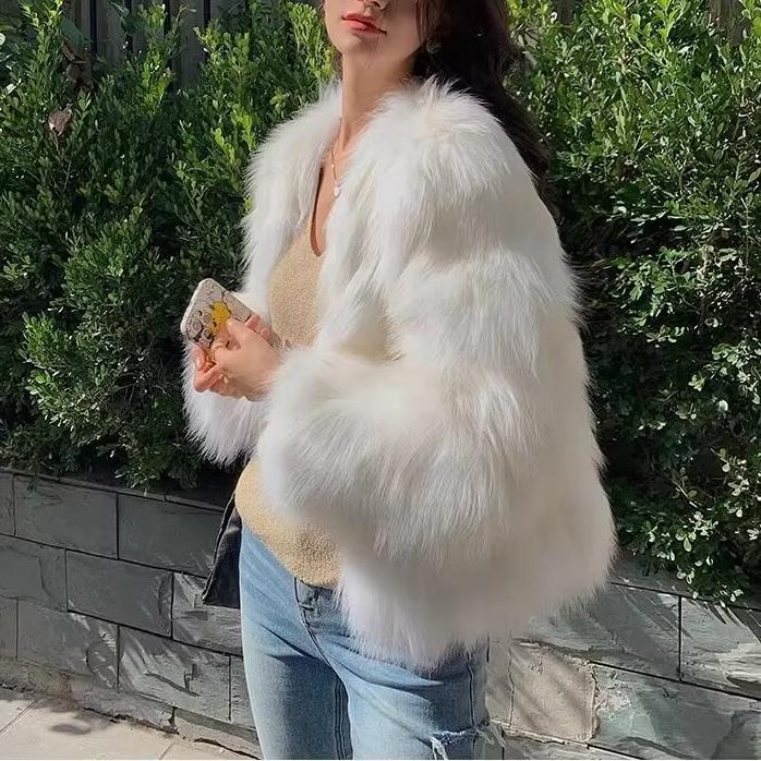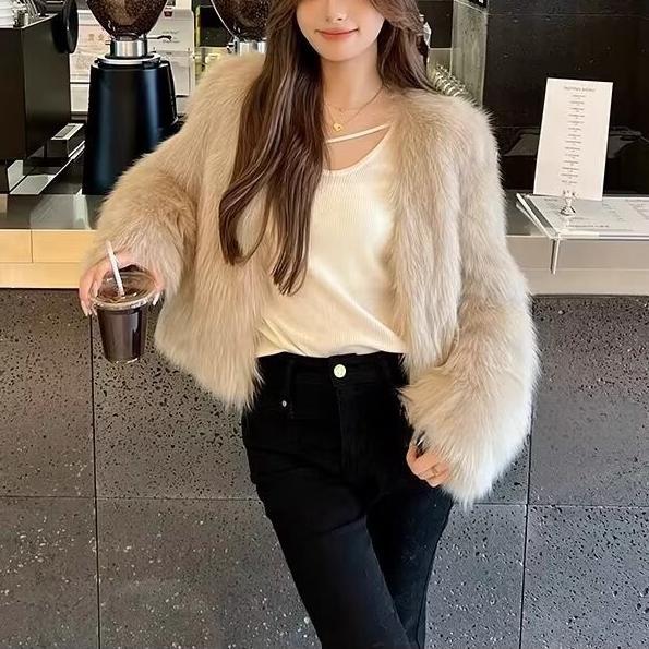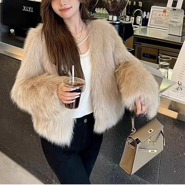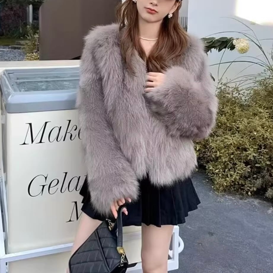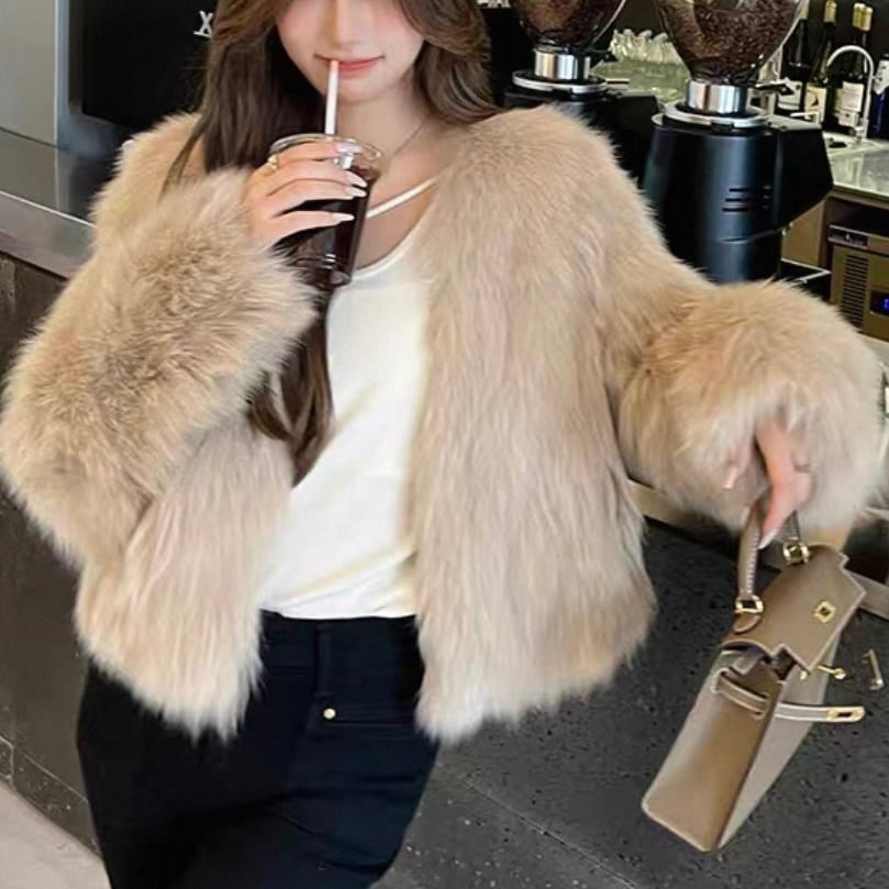 大人の女性にぴったり☆エレガントで温かみのある「エレガントフェイクファー ノーカラーショートコート」のご案内です♡このアイテムは、ふわふわのフェイクファーを使用したショート丈のコートで、寒い冬の日に最適!ノーカラーのデザインが洗練された印象を与え、エレガントなスタイルを演出します。結婚式やパーティーなどの特別なシーンでも活躍しつつ、もこもこの素材感が軽やかで心地よい着心地を実現しています♪