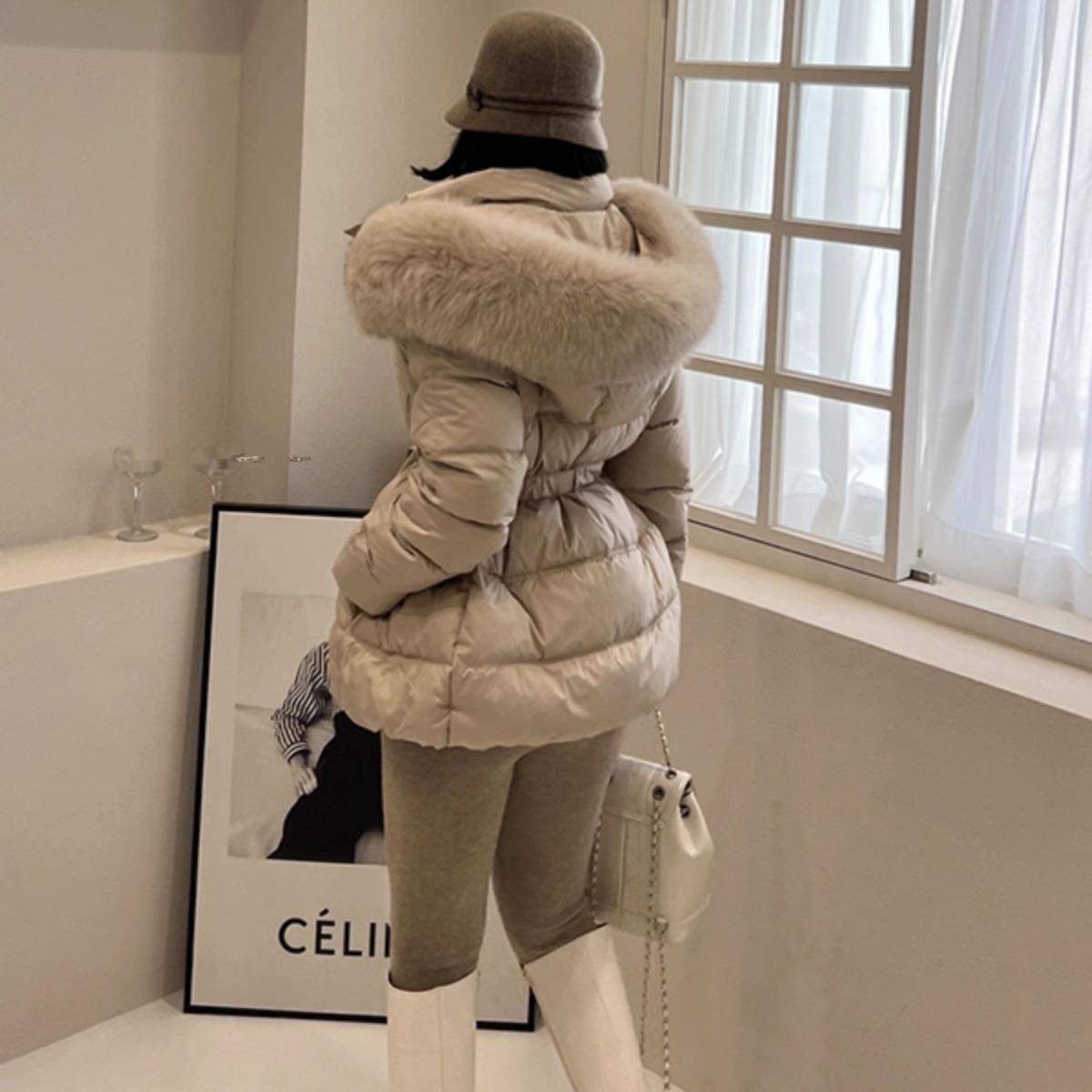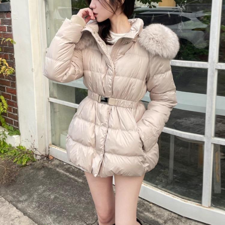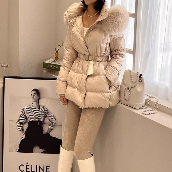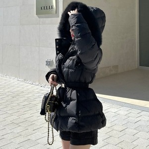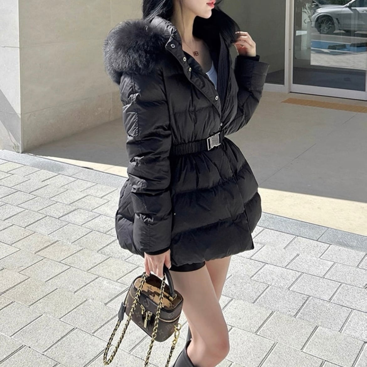 大人の女性にぴったり☆温かさとスタイルを兼ね備えたミドル丈ベルトダウンコート♡ダックダウンを使用した高品質なミドル丈のダウンコート!寒い季節に最適!ふわふわのファーとベルトデザインが魅力的で、エレガントな印象を与えつつ、カジュアルスタイルにも映えるアウターです。ダウンパッド入りで軽やかな着心地を実現し、暖かさも抜群です♪