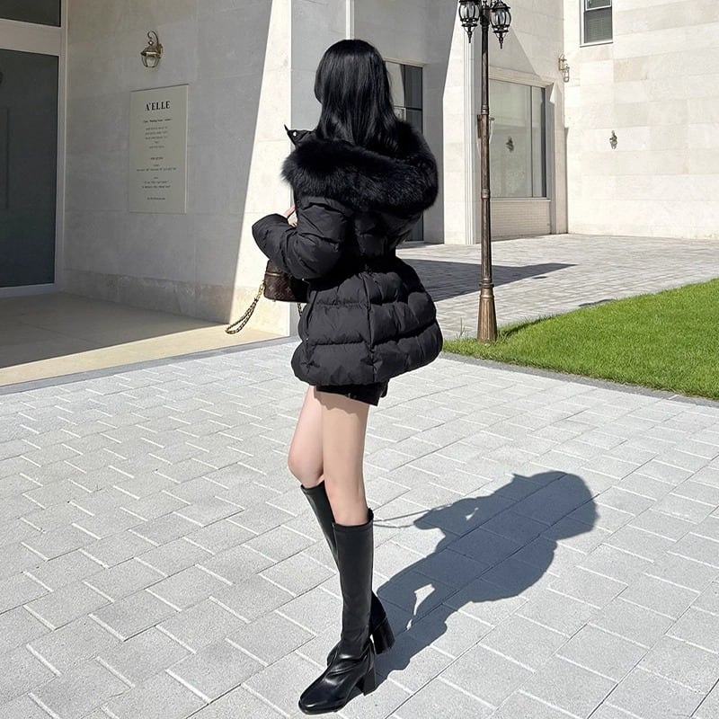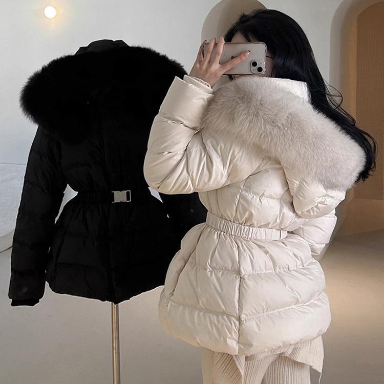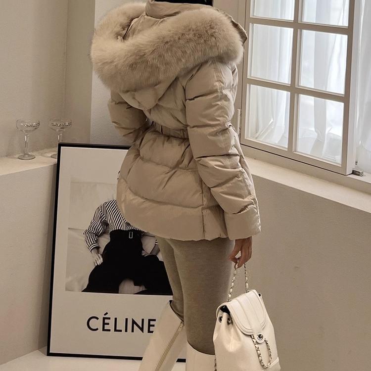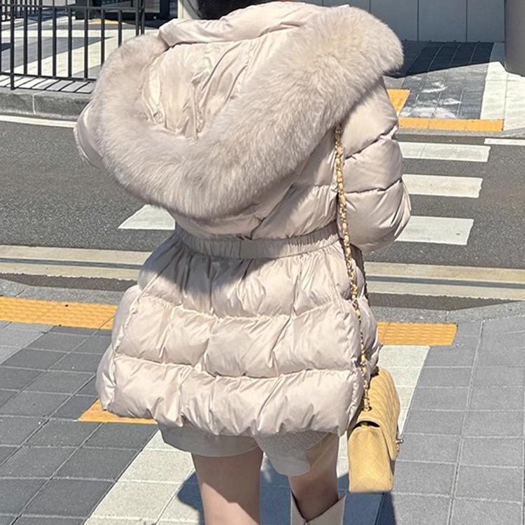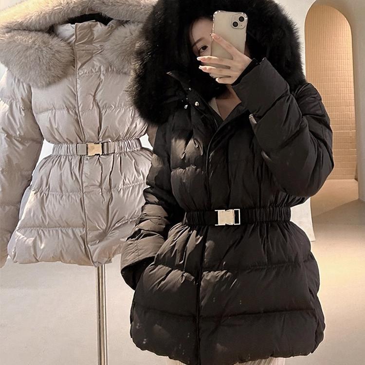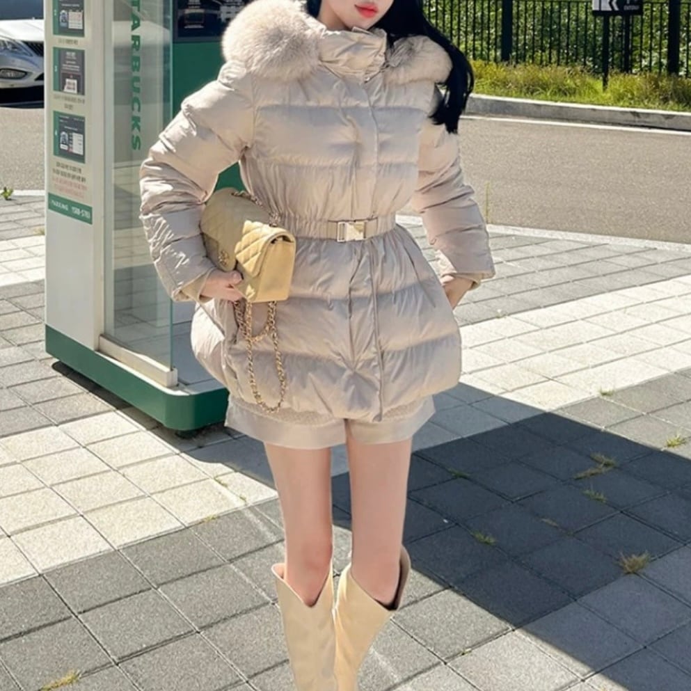 大人の女性にぴったり☆温かさとスタイルを兼ね備えたミドル丈ベルトダウンコート♡ダックダウンを使用した高品質なミドル丈のダウンコート!寒い季節に最適!ふわふわのファーとベルトデザインが魅力的で、エレガントな印象を与えつつ、カジュアルスタイルにも映えるアウターです。ダウンパッド入りで軽やかな着心地を実現し、暖かさも抜群です♪