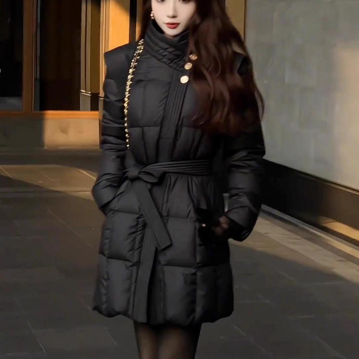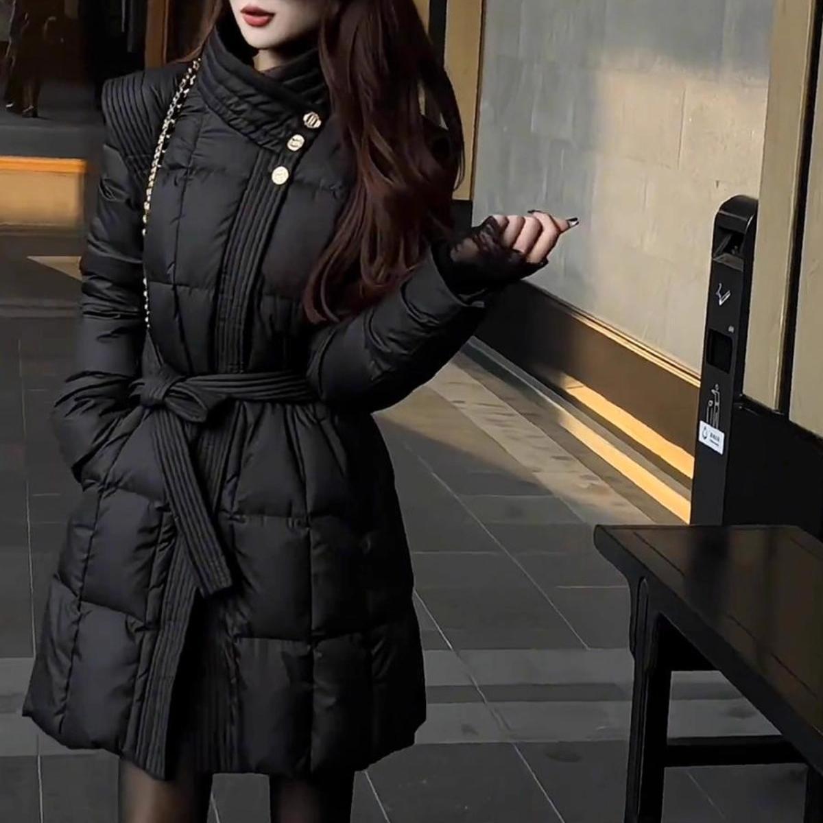 大人のワンホンっぽコーデが好きな人に朗報♡エレガントミディ丈 キルティングダウンコート のご案内です♡暖かさとエレガントなスタイルを兼ね備えたミディ丈のダウンコートです。優雅なAラインシルエットが魅力で、顔周りのボタンがポイント♡きれいめなカジュアルスタイルを演出します!日常のお出かけはもちろん、特別なシーンにもぴったりな一着です♪