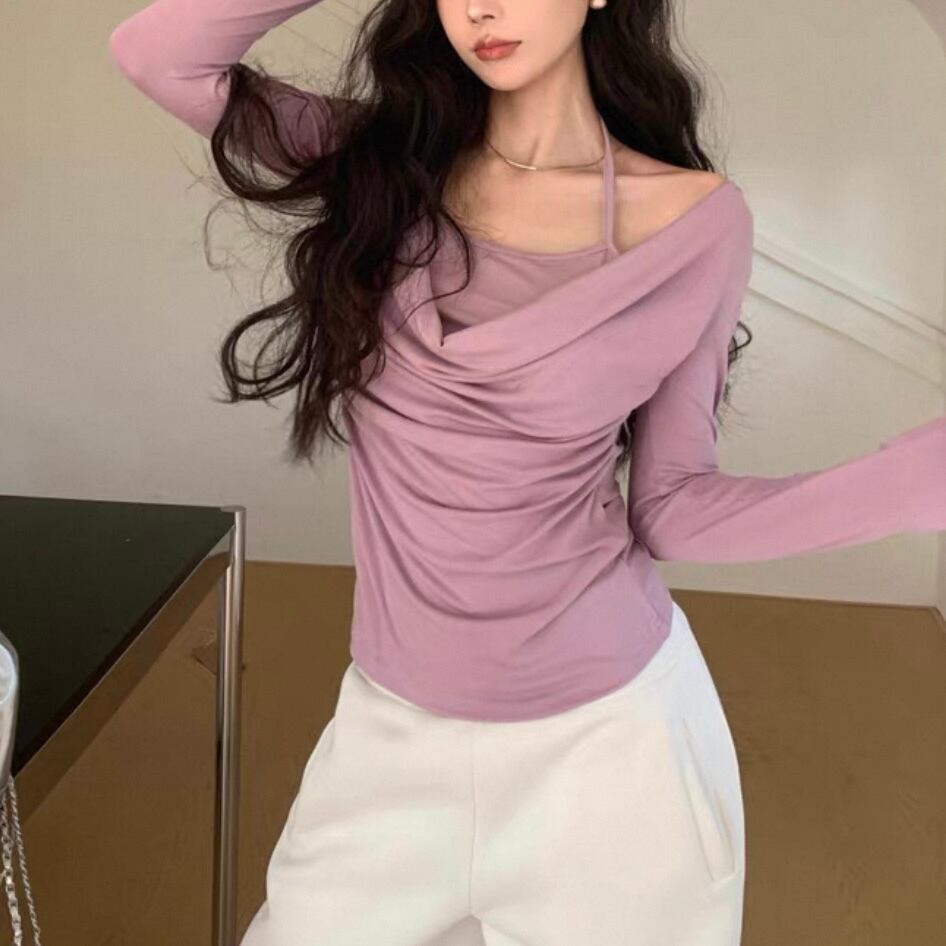 エレガントなドレープキャミとのレイヤードデザインが、きれいめカジュアルスタイルを実現♡シンプルながらも女性らしい印象を引き立て、デニムやスカートとの相性も抜群!!あらゆるコーデに活躍します♡