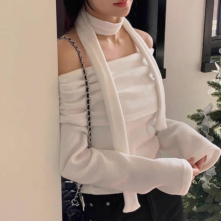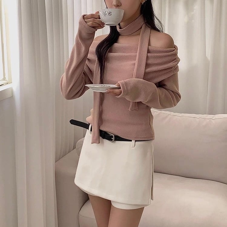 ボウタイ付きのオフショルカットソー♡
