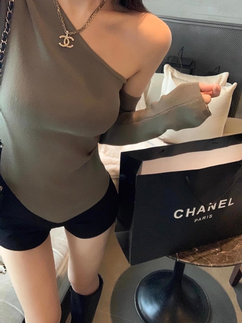 洗練されたスタイルが魅力♡独特のワンショルデザインで、片方にはアームカバーが付いており、トレンドを取り入れつつも個性豊かな印象に仕上げています。裾が斜めにカットされていることで、動きやすさを兼ね備えながらもエレガントなイメージを演出します!