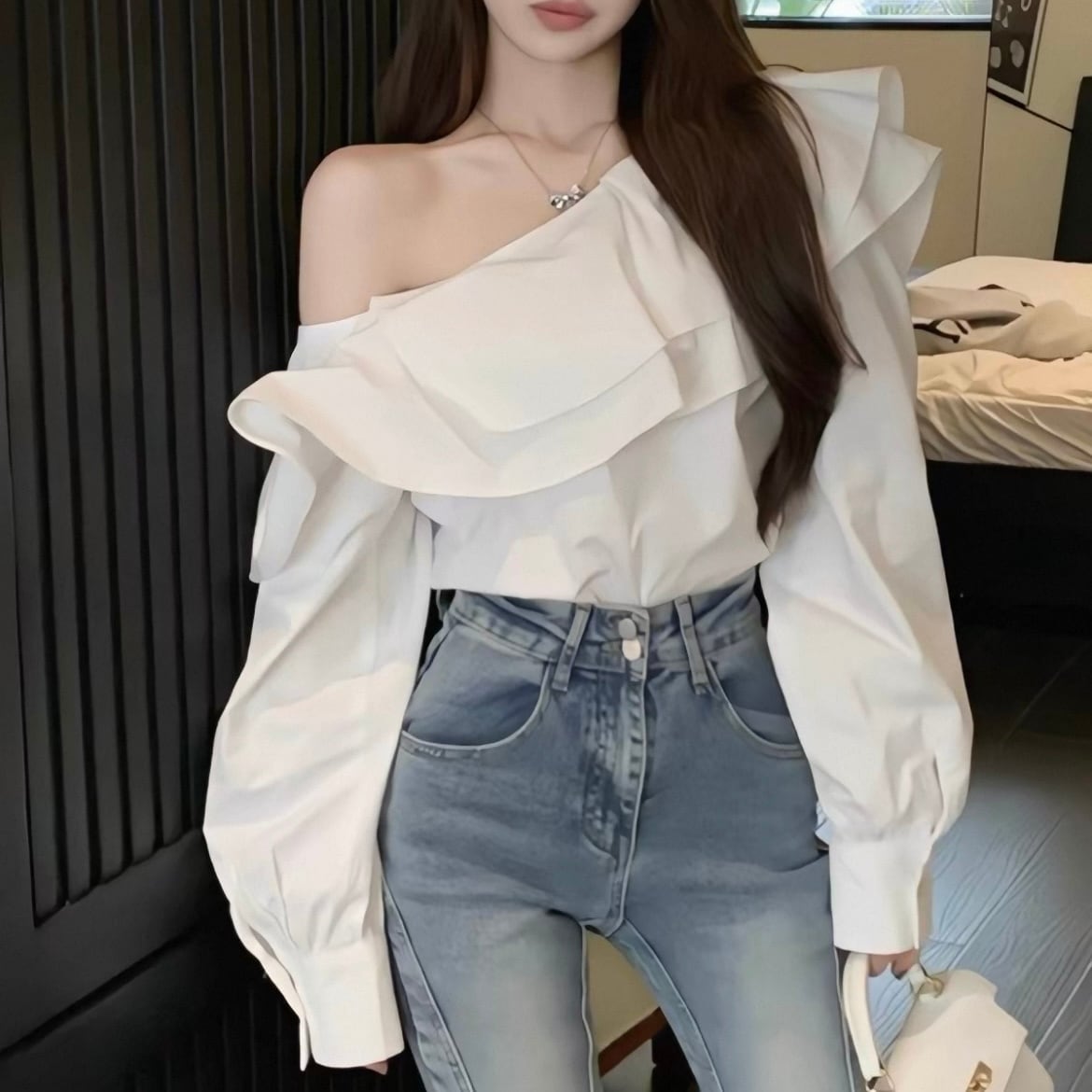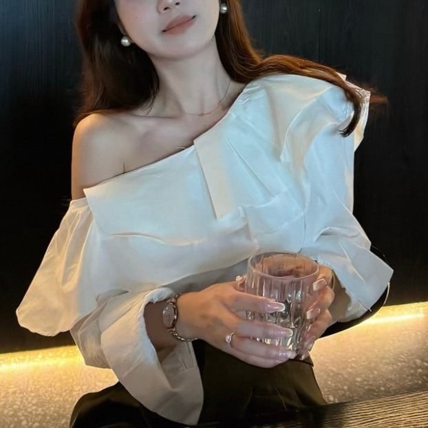大人sweetな雰囲気を演出するフリルワンショルブラウス♡甘めのトップスにあえてデニムやマニッシュはパンツを合わせると今っぽいコーデに♡デイリースタイルから特別なシーンまで、幅広いシチュエーションで活躍する魅力的な一枚です⭐︎