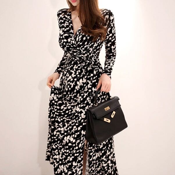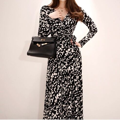 カシュクールプリントロングワンピース