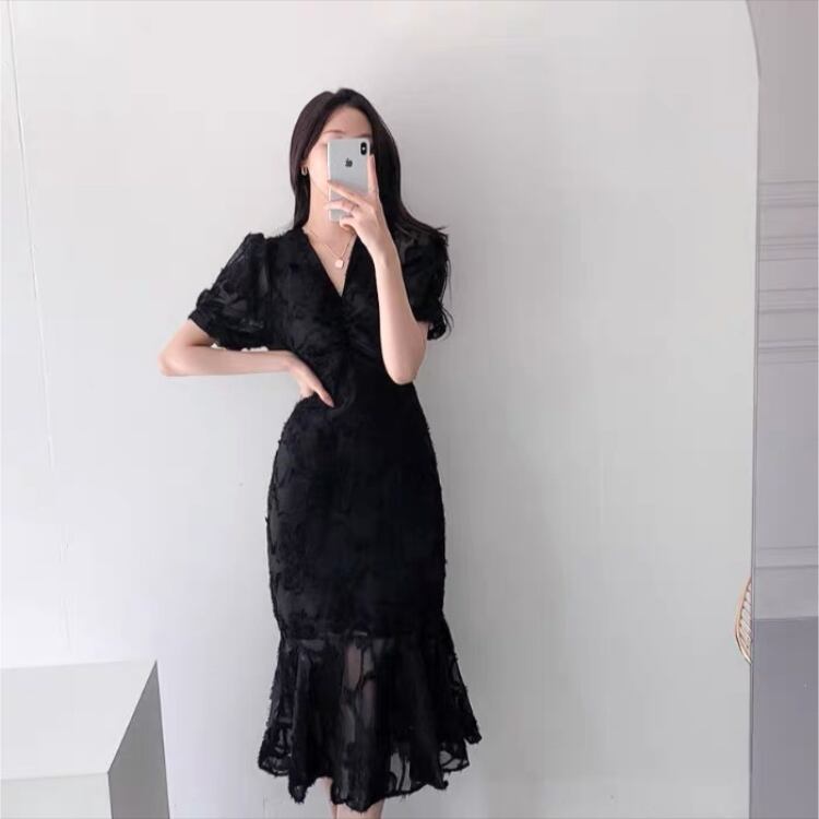 フラワー刺繍フィッシュテールワンピース