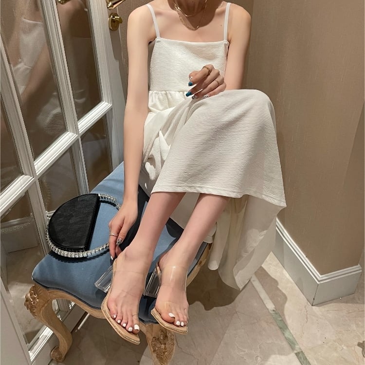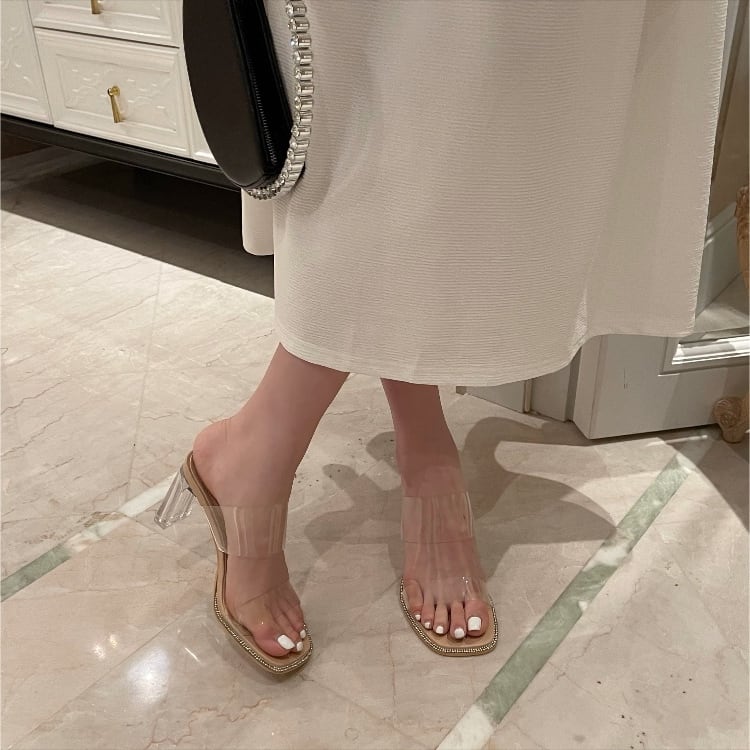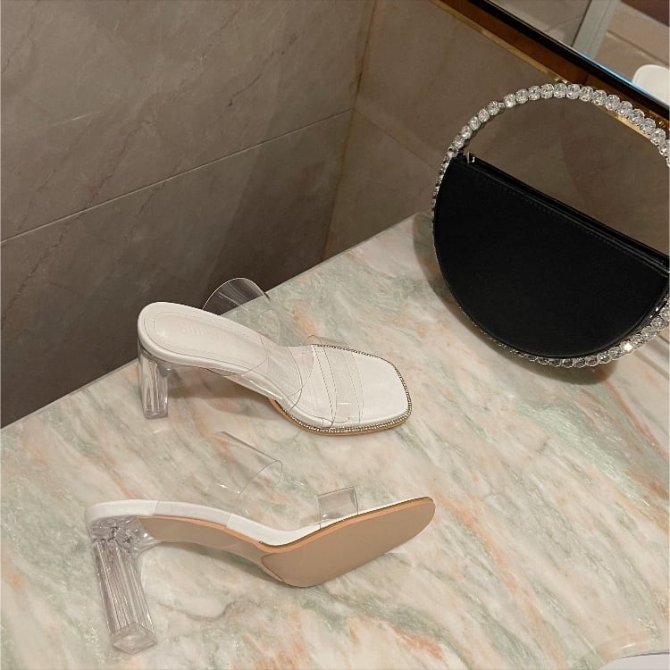 シンプルなクリアサンダルに華やかさがプラスされます!