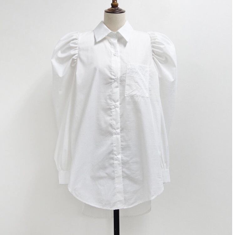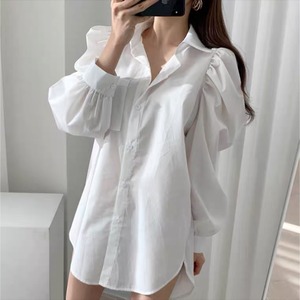 パワーショルダーがポイントのホワイトシャツ♡ミニにロングブーツを合わせてワンピースのように着ても可愛いですし、ロングスカートなどにシャツの裾をINして着てもとっても可愛いです♡