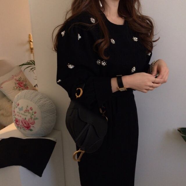 コーデュロイ生地にビジューがあしらわれた華やかなワンピース♡