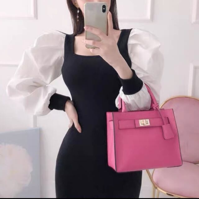 モノトーンパフスリーブマーメイドワンピース