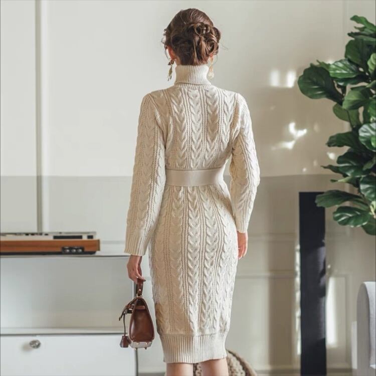優しいオフホワイトの色味と、ウエストをマークしたタイトシルエットでモテ確実の1枚です♡