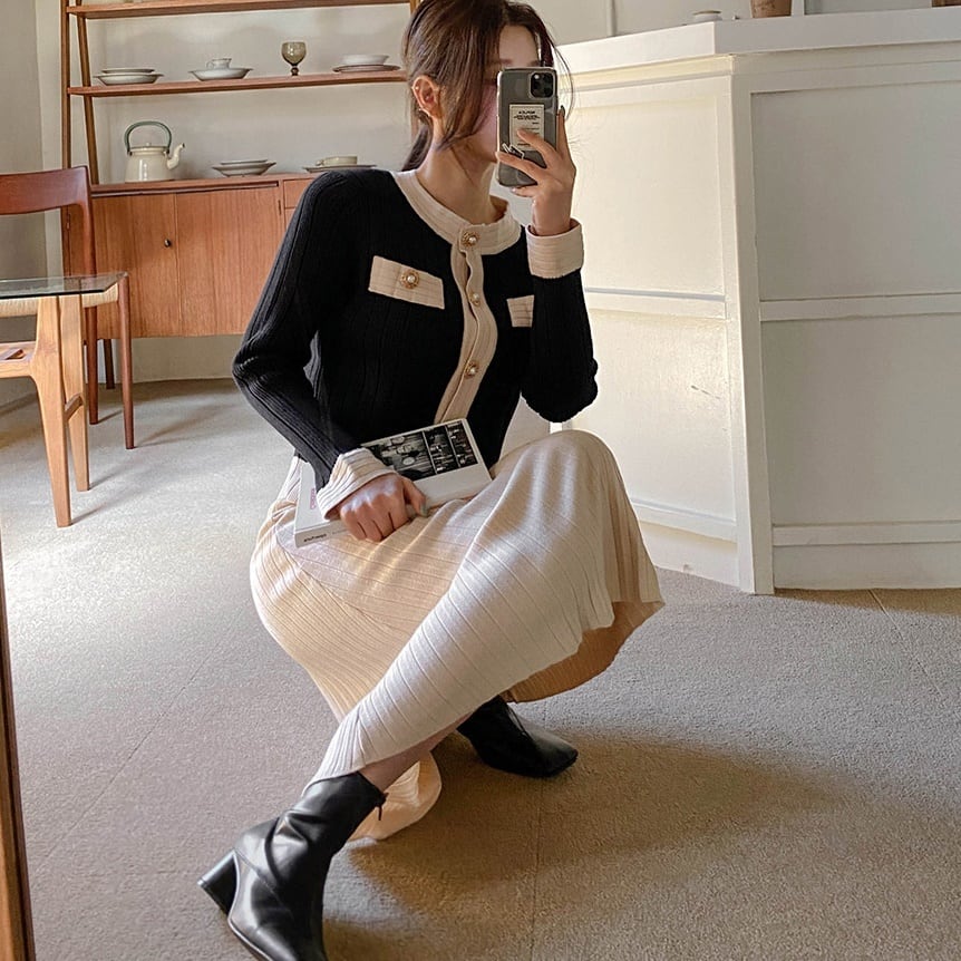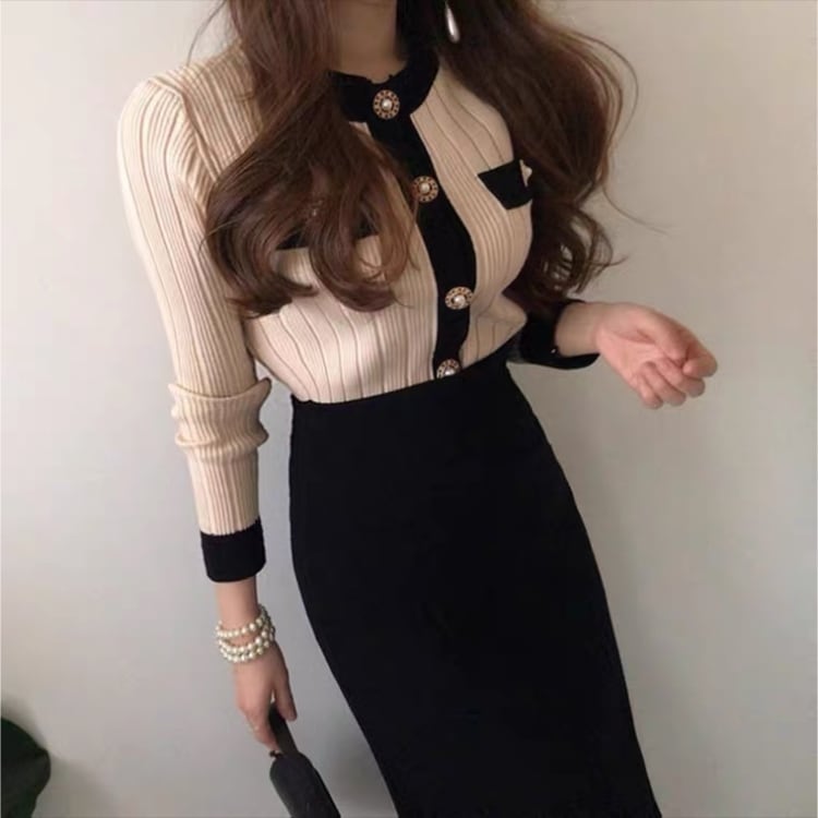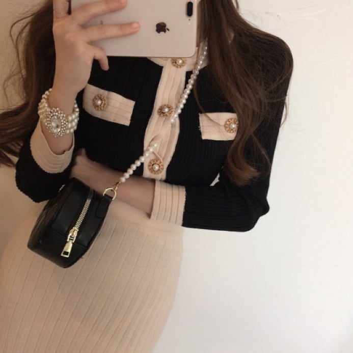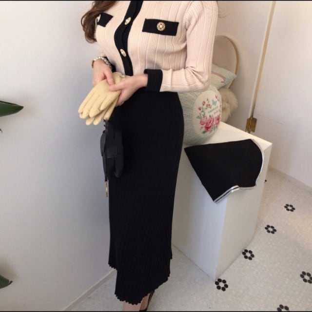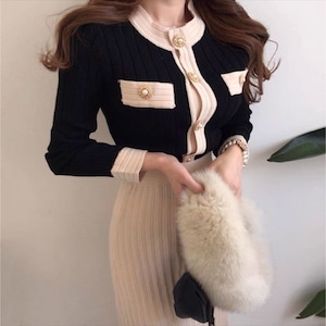 落ち着いたカラーのバイカラーデザインが大人エレガントな印象のセットアップ♡