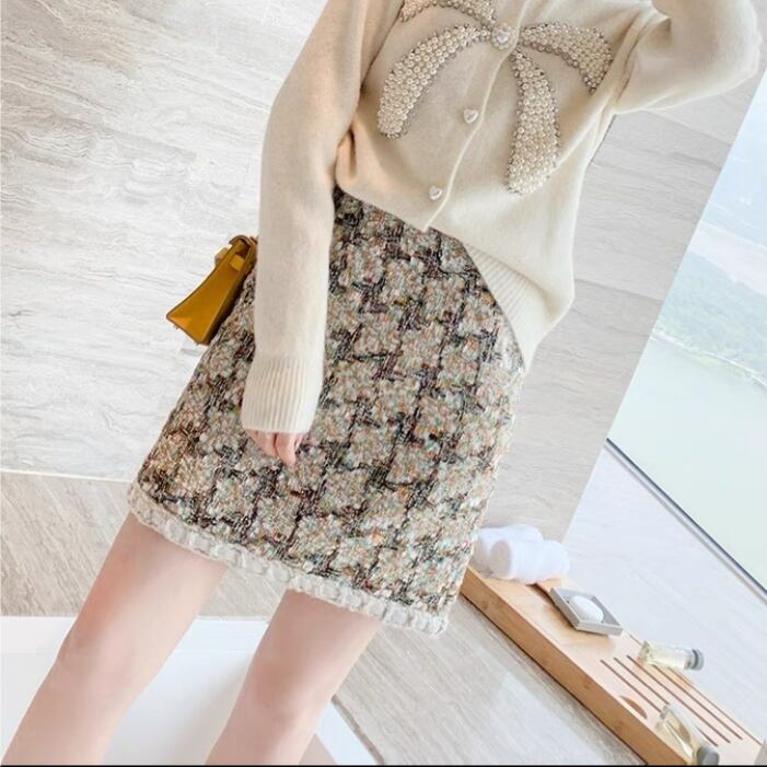 カラフルなラメツィードとゴールドの糸が織り交ぜられたとっても華やかなミニスカート♡
