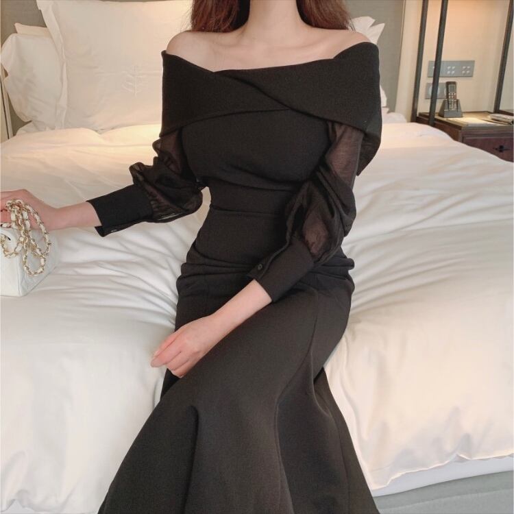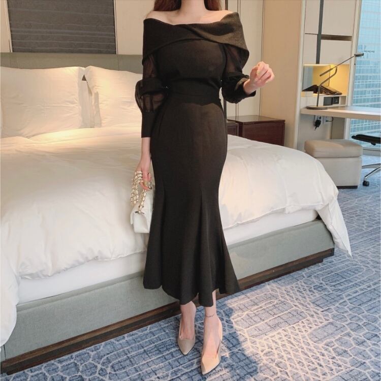 オフショルシフォンマーメイドワンピース