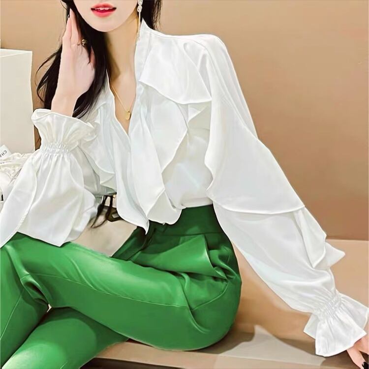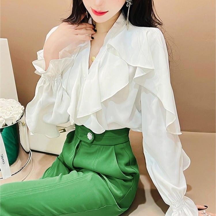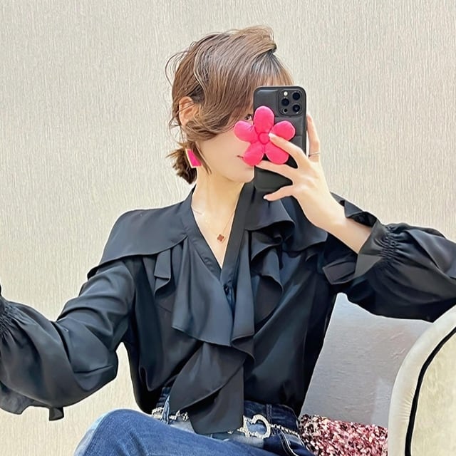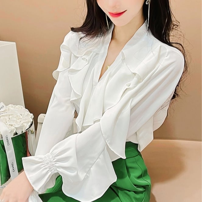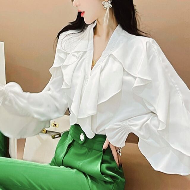 フリルがふんだんにあしらわれた華やかでエレガントシャツ❤︎