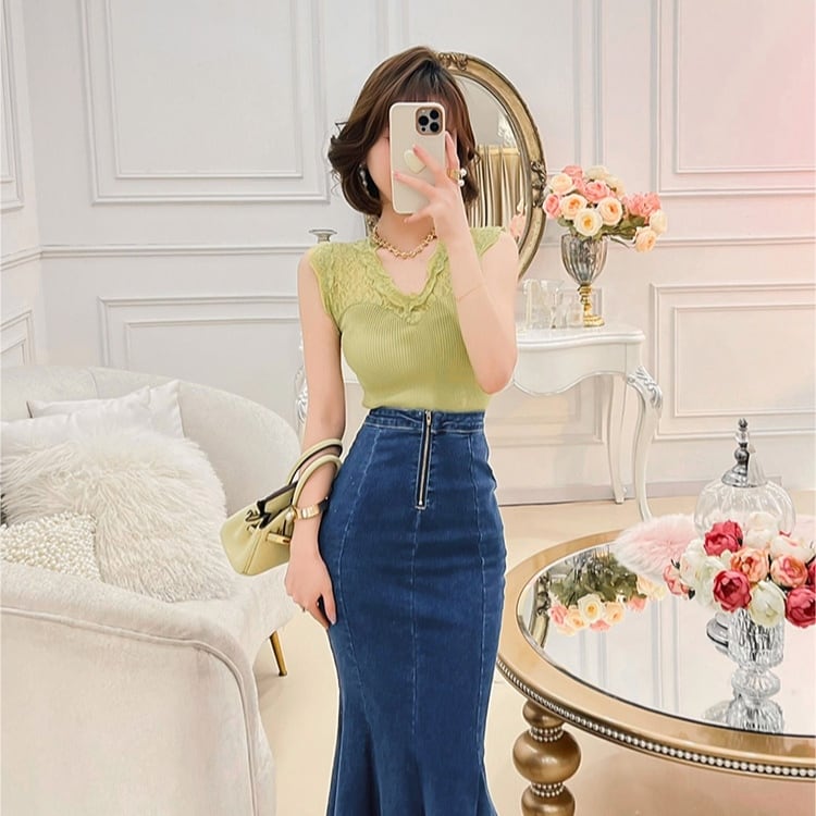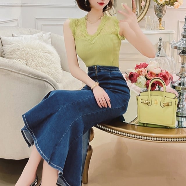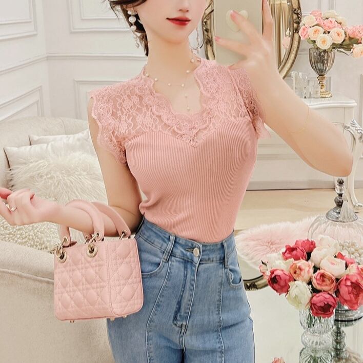 デコルテの華やかなレースデザインが大人フェミニンな印象のノースリーブトップス♡