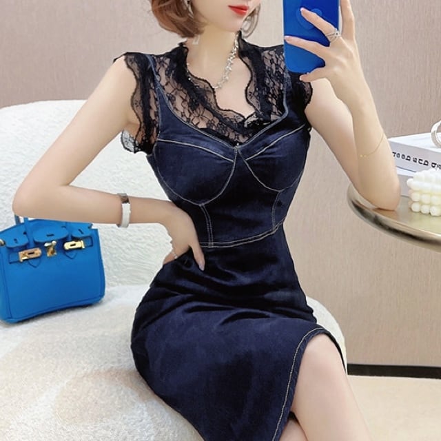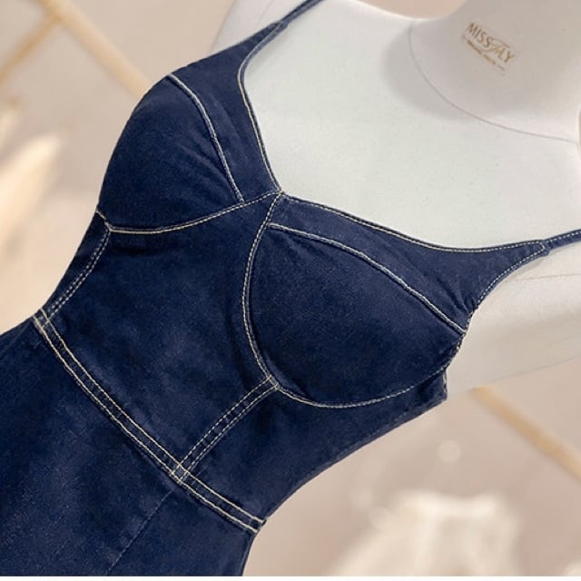 華奢なストラップとタイトなシルエットが女性らしさを演出♡