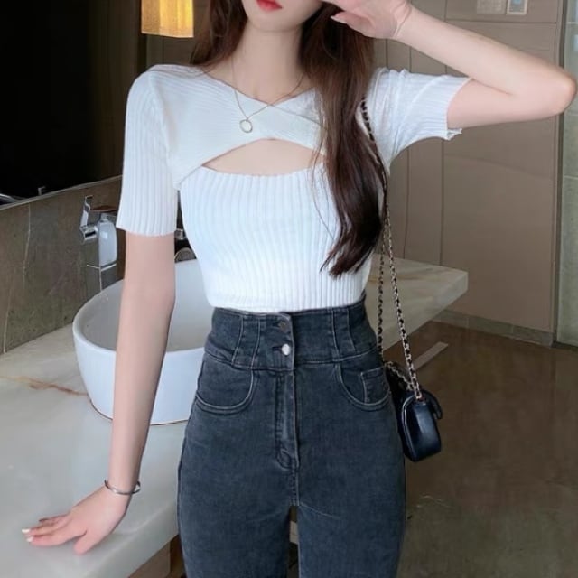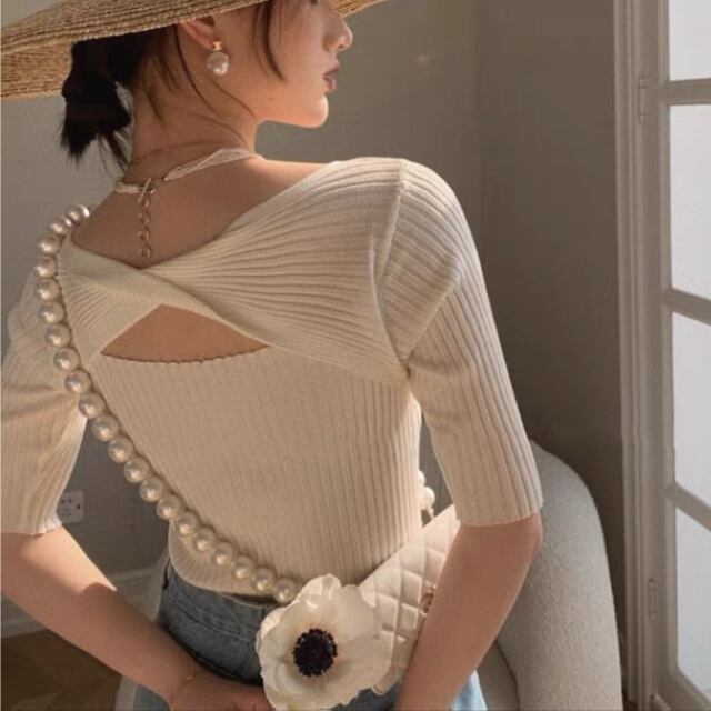 胸元と背中がさりげなくセクシーなクロスオープントップス♡