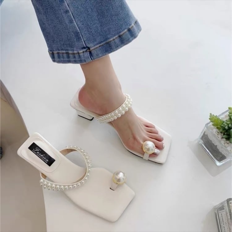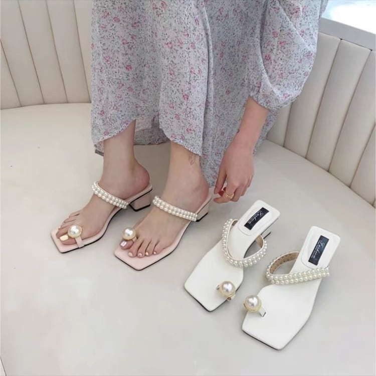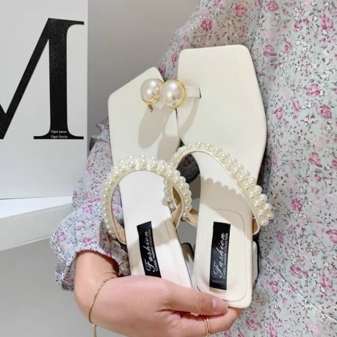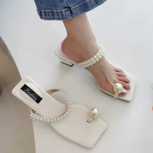 淡い色味にパールの存在感が映えるトングサンダル♡